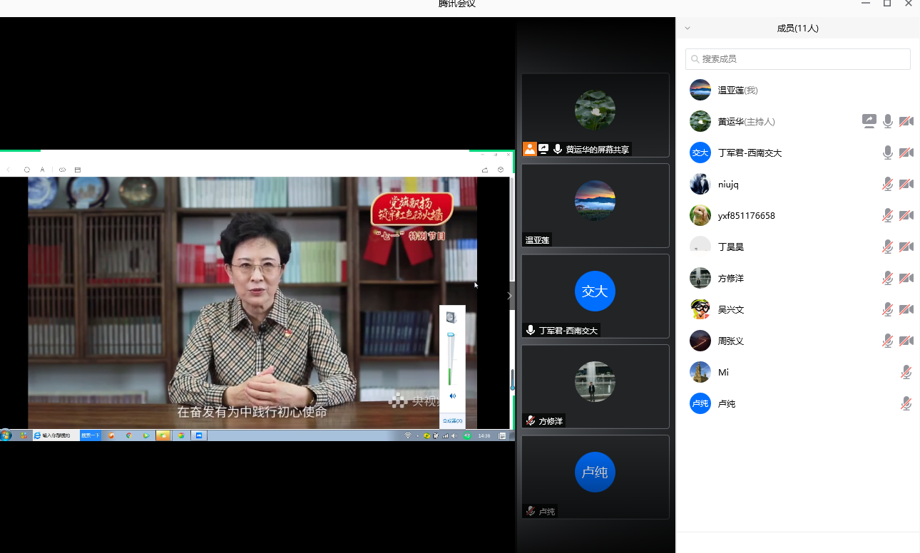 202072日下午1430分,机车车辆党支部采用了“腾讯会议”线上开展党员组织生活会,会议由黄运华书记主持。