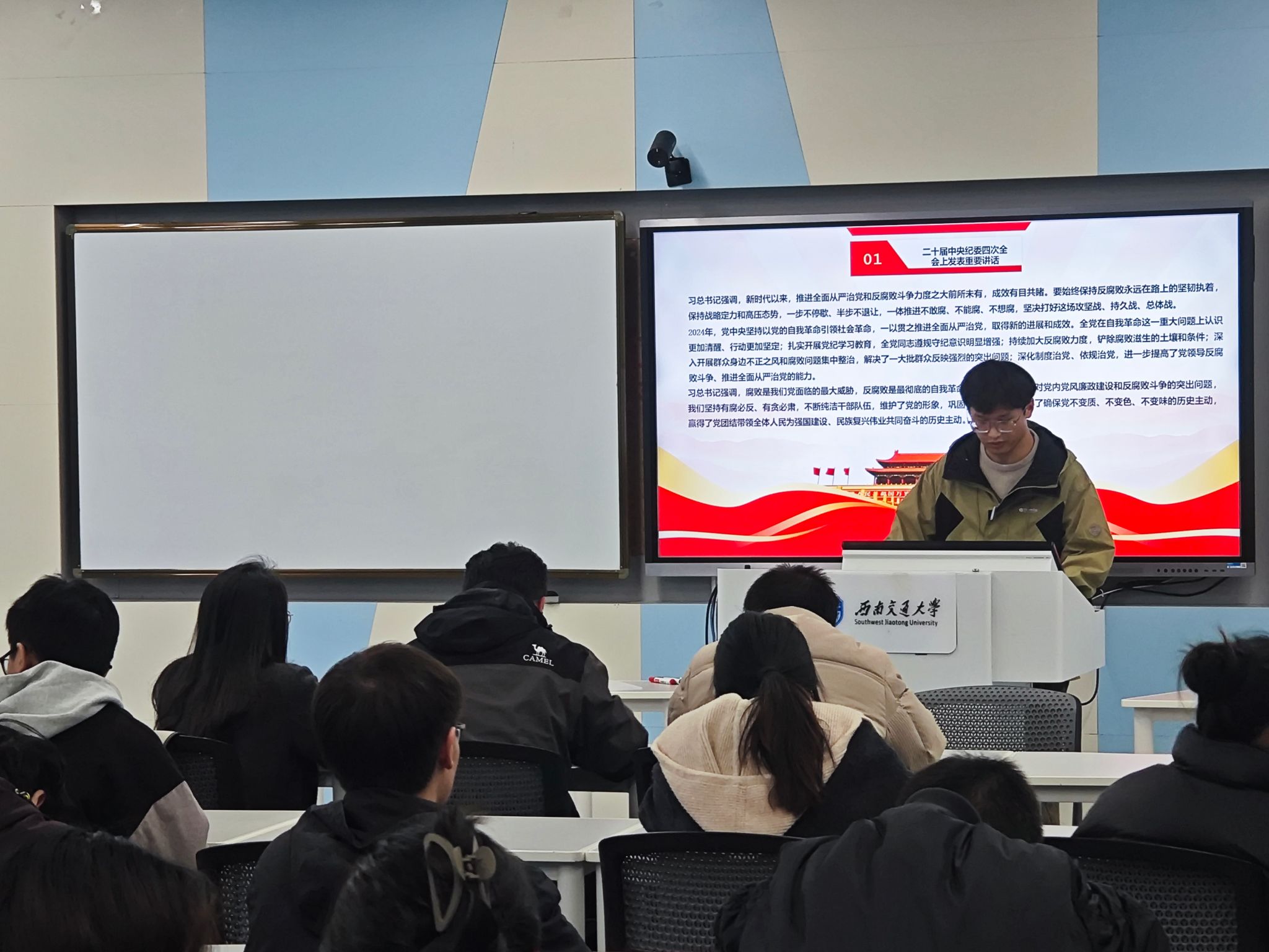 会议开始,各组同志对相关学习内容进行分享学习。第一组同志带领学习习近平总书记在二十届中央纪委四次全会上的重要讲话。习近平总书记在讲话中强调,要以永远在路上的清醒和坚定,深入推进反腐败斗争,进一步落实全面从严治党的各项举措,这不仅是对全党全体党员的警醒,更是对每一个国家公职人员的鞭策。习近平总书记提出要把反腐败斗争进行到底,充分彰显了我们党在反腐败斗争中的坚定立场。反腐败不仅关乎党的形象和信誉,更关乎民众的切身利益。讲话中强调要深刻认识反腐败斗争的重要性和长期性,使我意识到,反腐败不是一朝一夕之功,而是一个长期、系统的过程。在这个过程中,需要每一个党员的积极参与和共同努力。习近平总书记的重要讲话为我们指明了方向,也为我们提供了实实在在的行动指南。在今后的学习和生活中,我们要更加自觉地将反腐倡廉的理念融入自己的实际行动中,为维护党的纯洁性、推动社会的和谐发展贡献自己的力量。