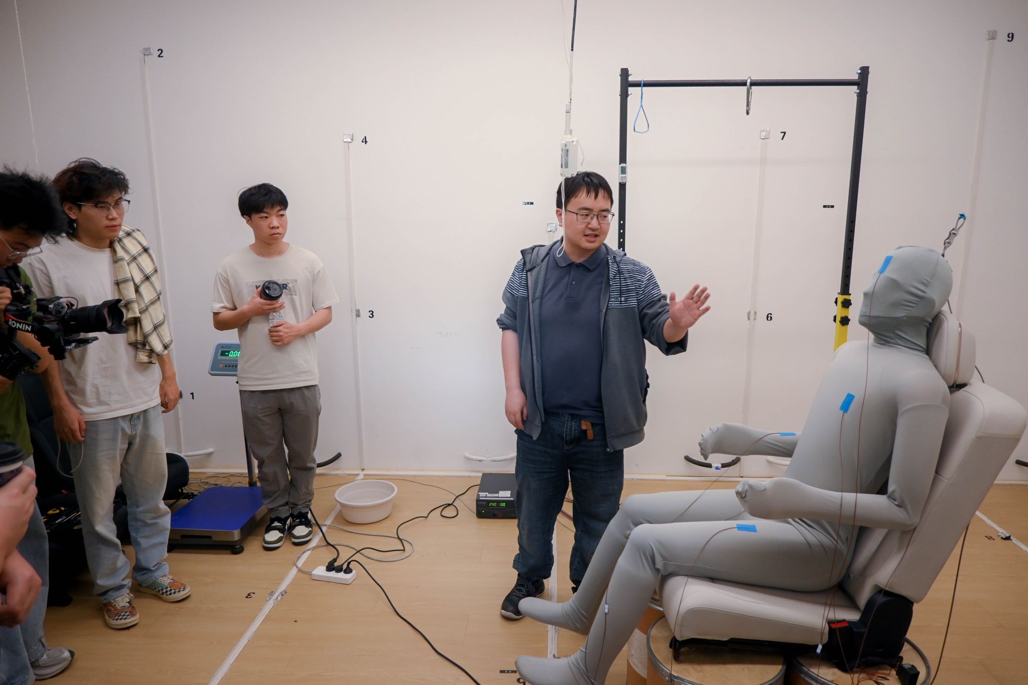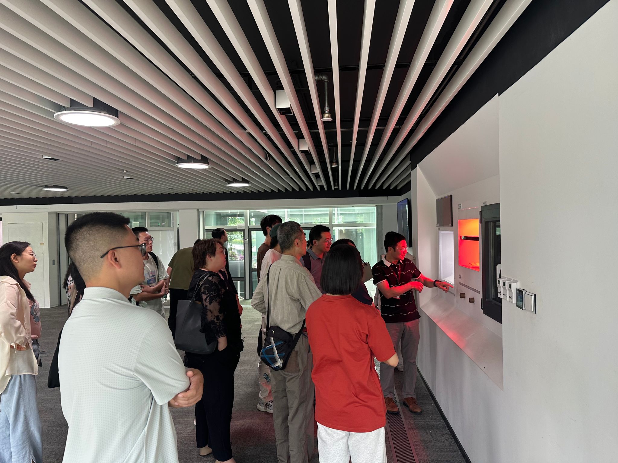 随后,党员们深入团队实验室,近距离观摩 “高精度环境模拟舱”“特长交通隧道通风与烟气扩散实验台” 等尖端设备。蒋福建老师现场演示极寒、高温等复杂环境模拟过程,研究生学长展示隧道火灾烟气扩散实验,让课本理论转化为触手可及的科技实践。