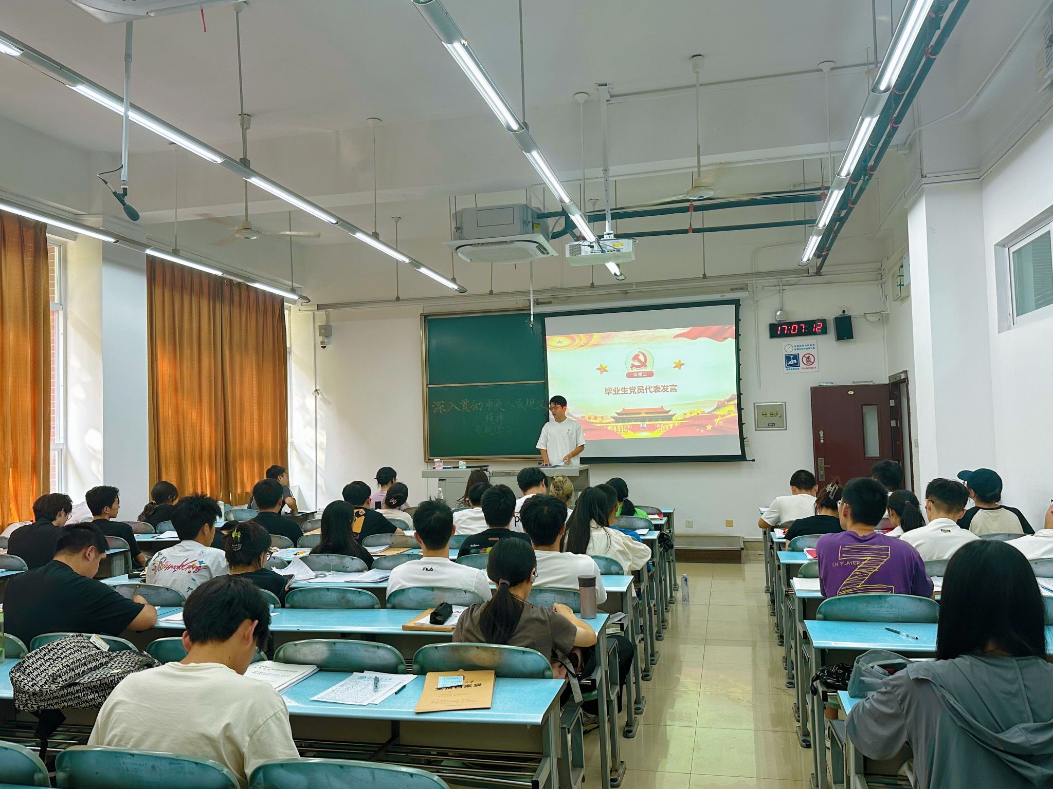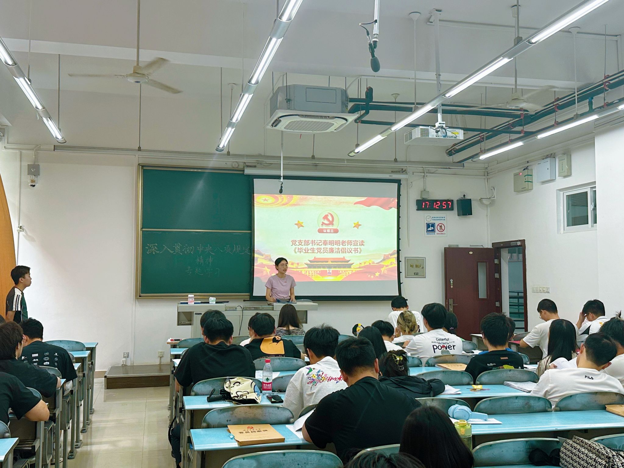 6 月 12 日,“清风廉韵” 主题沙龙在 X2225 教室举行,为毕业生党员上好离校前 “最后一课”。