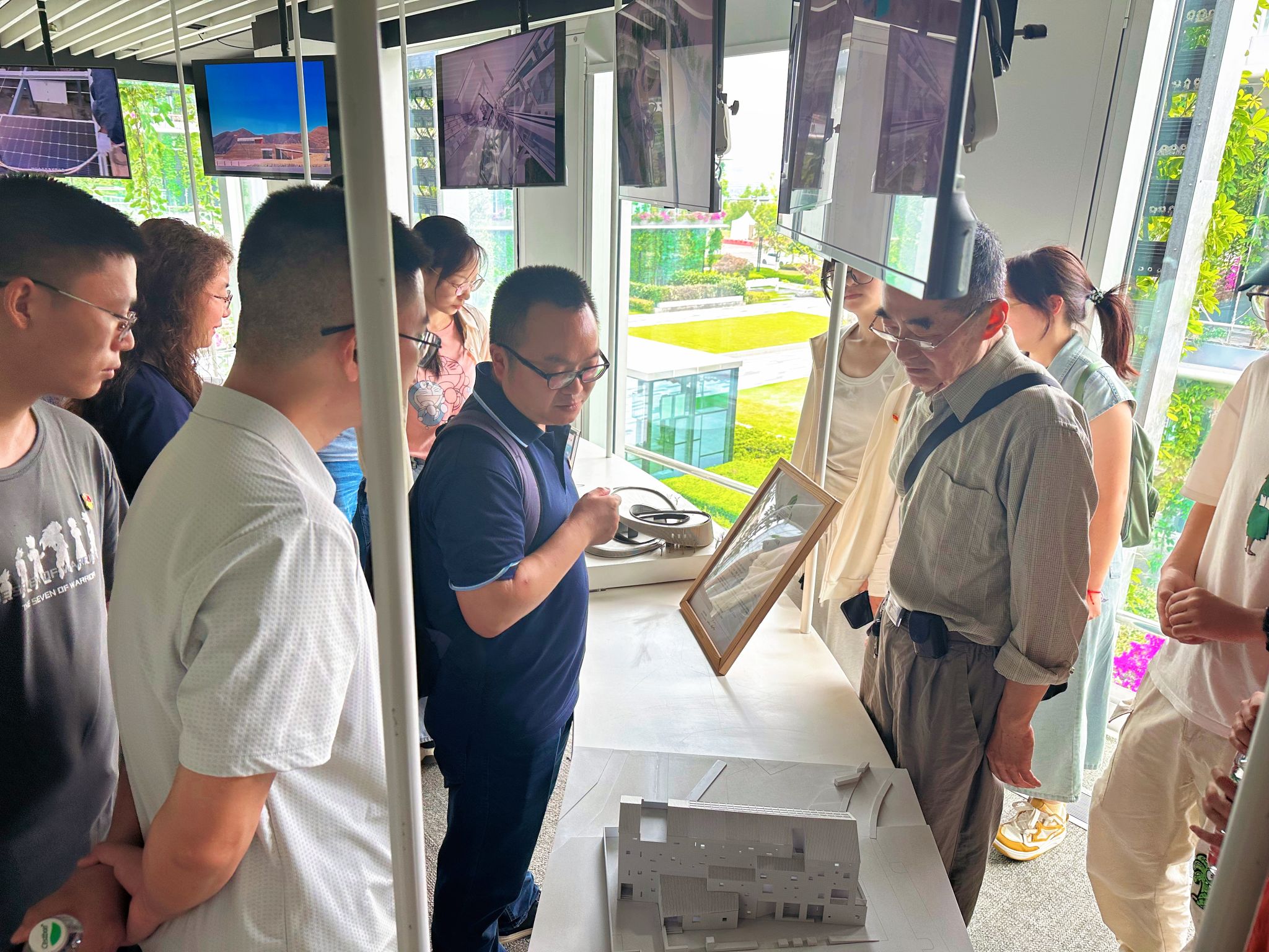 作为中国西部首个“近零碳建筑”,该总部采用双首层布局与层层退台设计,8000 平方米屋顶花园覆盖太阳能光伏板与本土植物,集成 40 余项低碳技术,年减碳量达 1027 吨,能耗仅为常规建筑的三分之一。在中建西南院双碳工程技术研究中心总工程师钟辉智的导学下,党员们参观企业展示大厅,通过项目模型与多媒体演示,系统学习绿色建筑从概念设计到实施的全生命周期减碳逻辑。