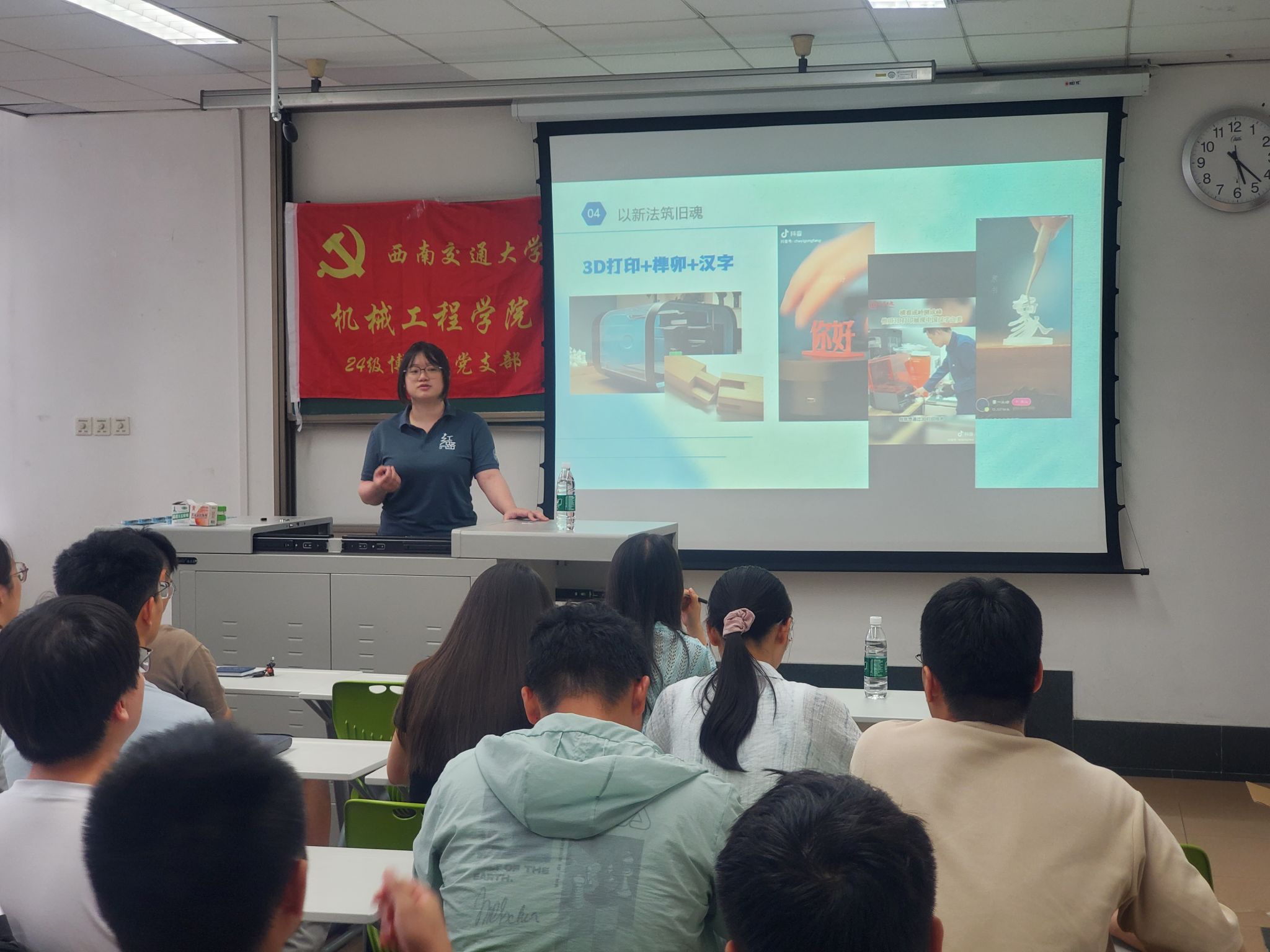 文化铸魂担使命 守正创新启新程——西南交通大学“红路”理论学讲团周诗嫣讲师为完美体育·(中国)官方网站24级博士班党支部讲授文化传承