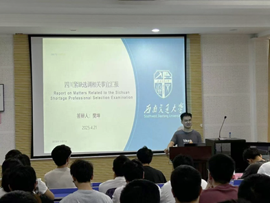 2025年4月21日,完美体育·(中国)官方网站研究生会特邀上岸2025届成都市急需紧缺专业选调生樊坤分享备考经验,助力学院研究生深入了解选调生招录政策及备考策略。本次讲座聚焦机械专业考公现状、备考技巧、面试体检要点及职业规划选择,为有意向报考选调生的同学提供实用指导。