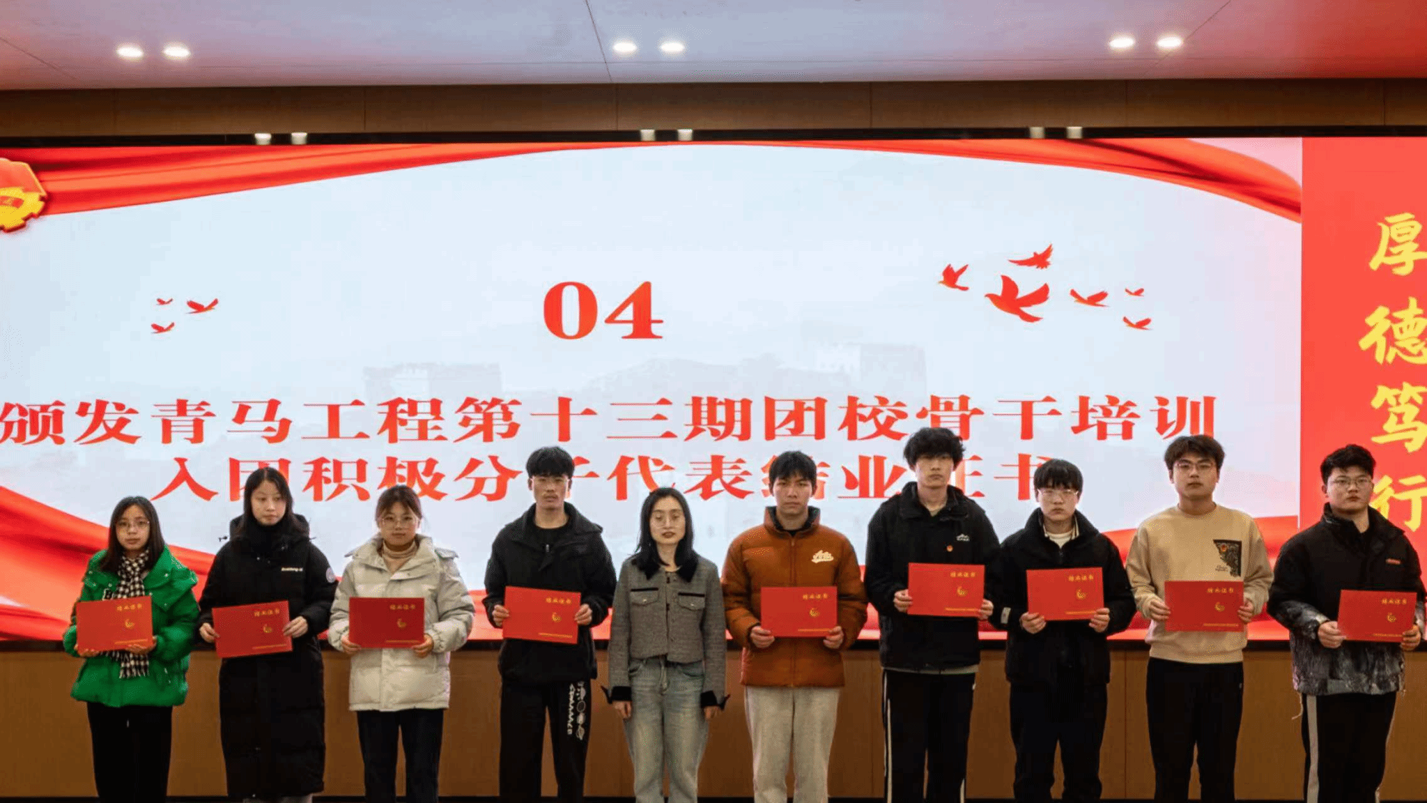 随后,团建中心指导老师奉明明宣读了本期团课骨干培训的学员结业名单,并由完美体育·(中国)官方网站团委书记何蕊芯为入团积极分子颁发结业证书;团校班主任周瑾则宣读了优秀学员名单,四位老师共同为他们颁发了优秀学员证书及团徽,以表彰他们在培训期间的卓越表现和积极贡献。