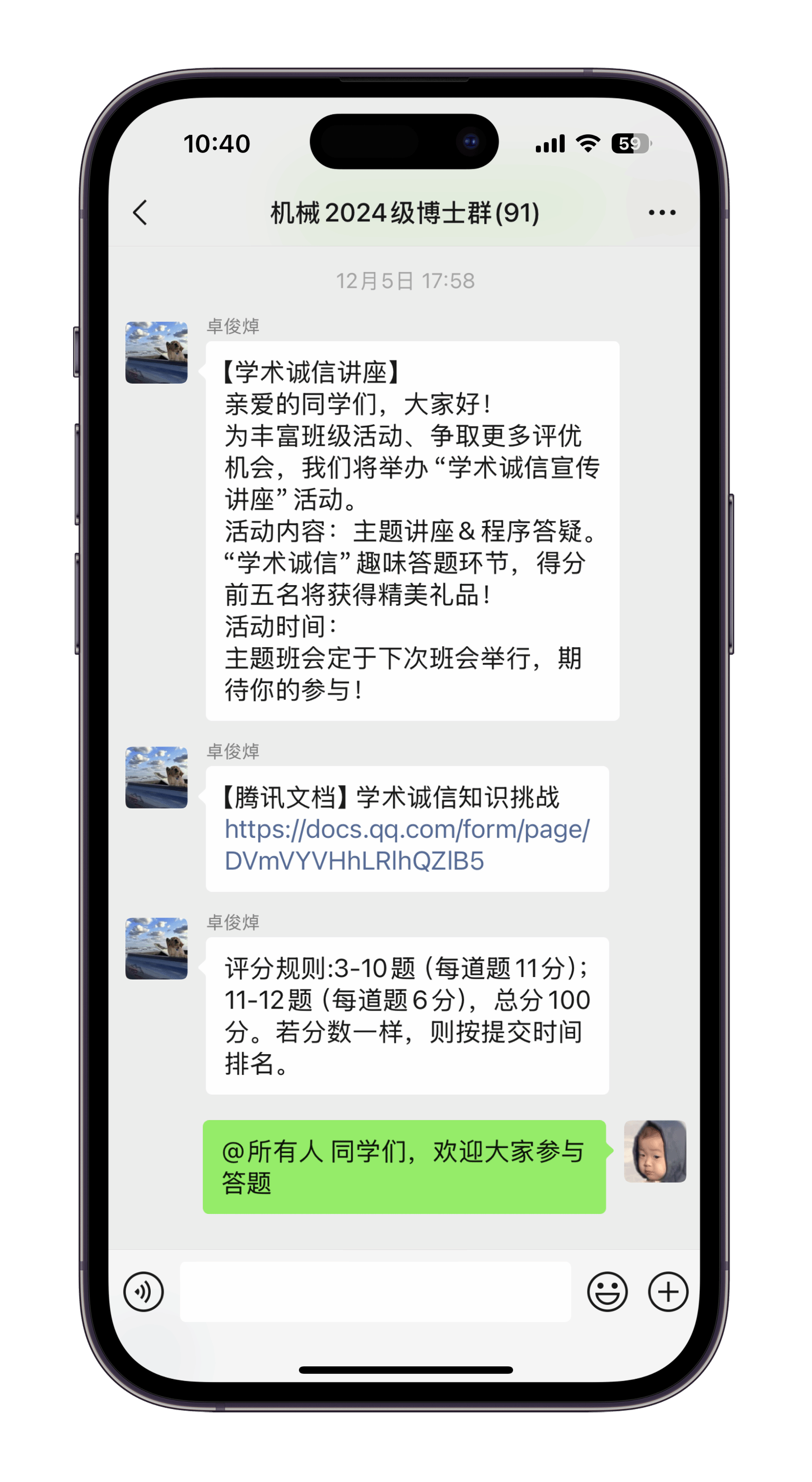 此次活动极大地深化了同学们对学术诚信内涵的理解与认同,成功营造了一种积极向上的学术氛围,为博士班的科研探索之路注入了满满的正能量与活力。