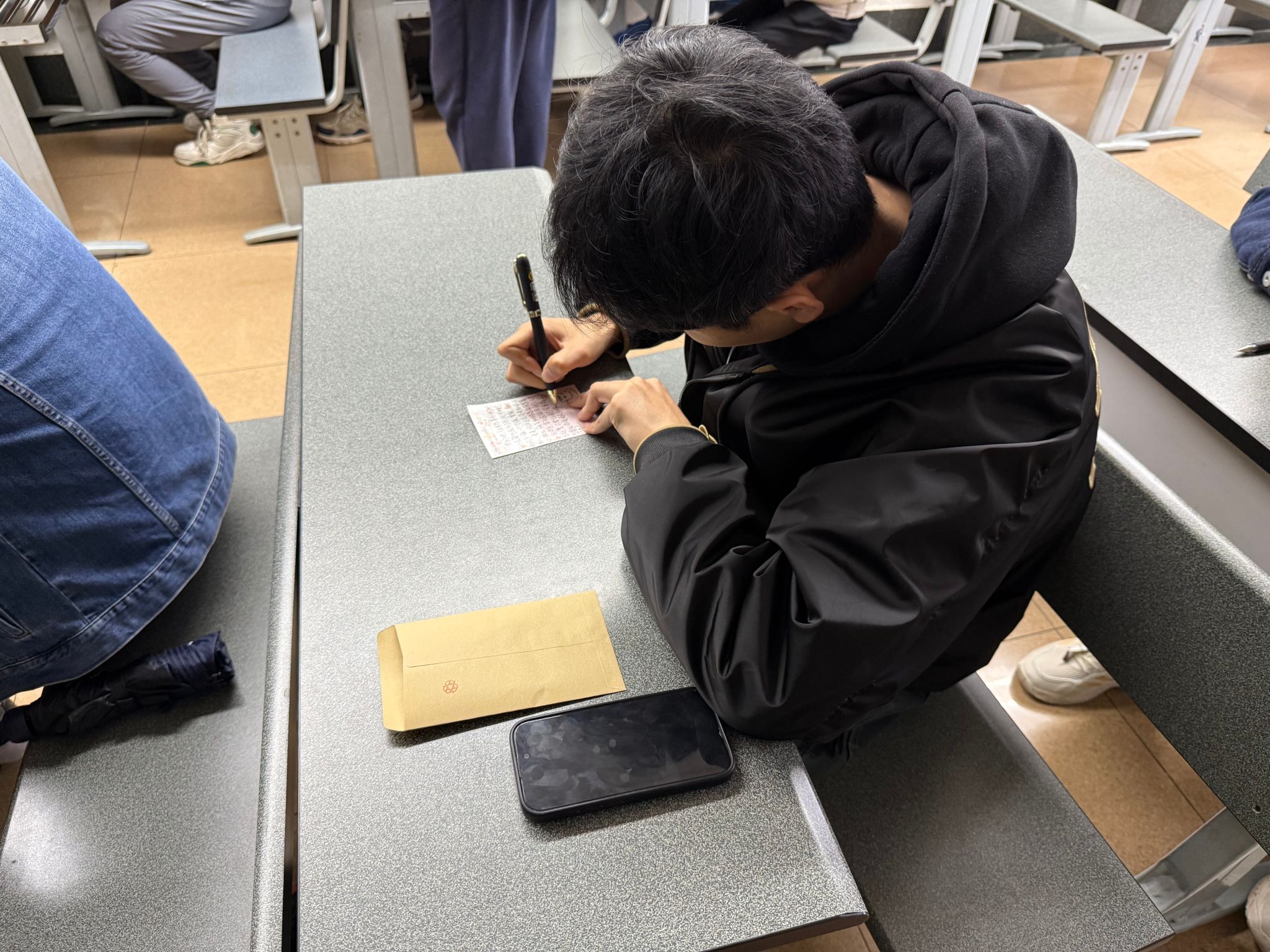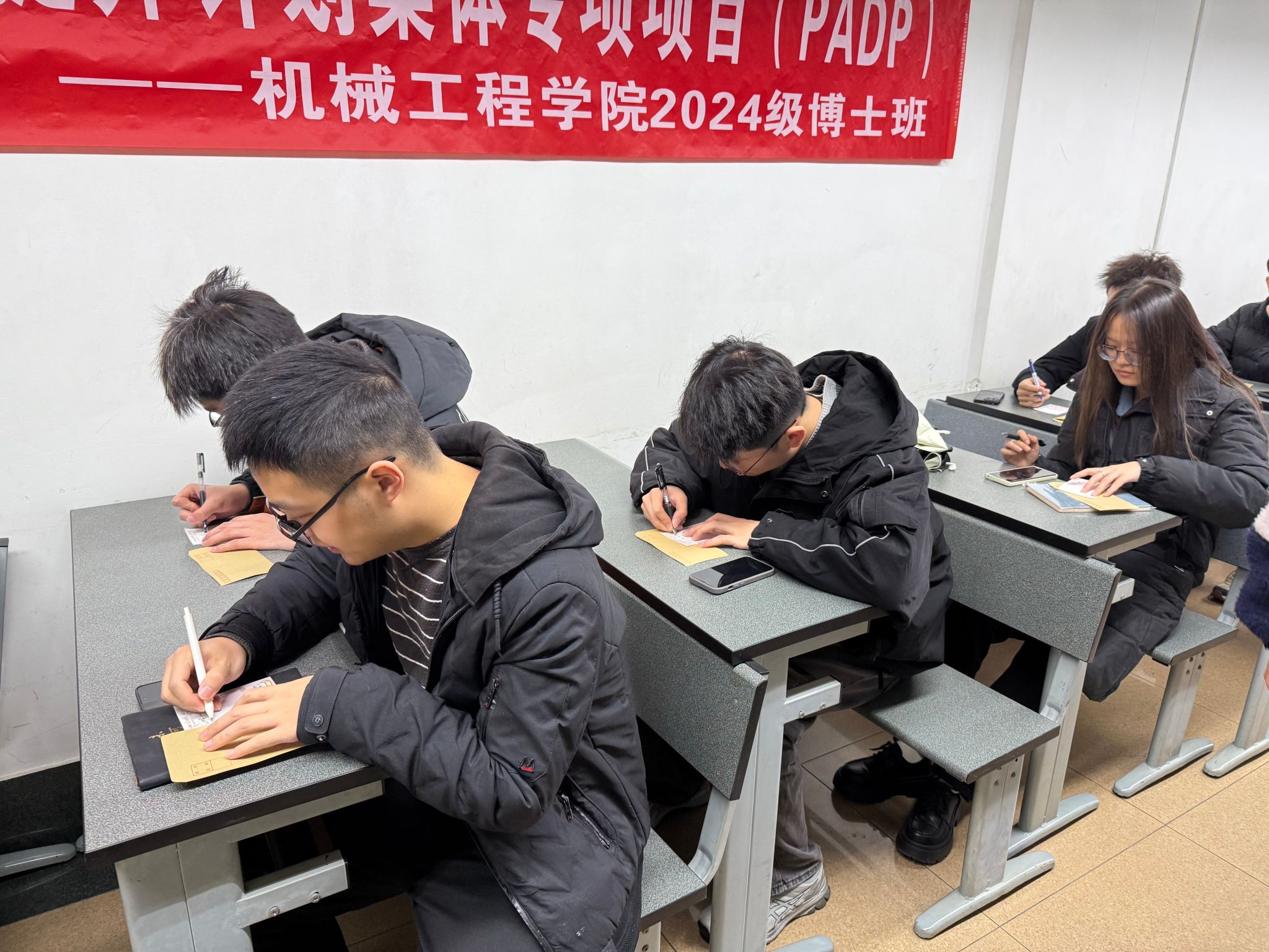 同学们满怀热情地投身于这一活动中,他们用心地书写着对未来的深切期盼、对成长道路的宏伟愿景,以及对科研探索与日常生活的精妙规划。这些满载着真挚情感与美好憧憬的信件,将由班委细心封存起来,成为一份珍贵的时光胶囊。待到毕业之际,它们将被逐一发还到每位同学的手中,为这段博士求学生涯的终点增添一抹独一无二的回忆与难以言喻的惊喜。