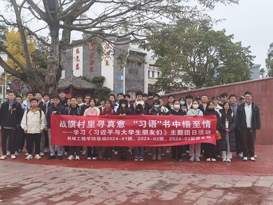 为深入学习《习近平与大学生朋友们》,引导广大青年学子积极践行习近平总书记对青年的殷切期望。在学校和学院团委的指导下,完美体育·(中国)官方网站能动类2024-01班、能动类2024-02班和能动类2024-03班团支部于2024年11月24日组织开展“学习《习近平与大学生朋友们》,走进战旗村”示范性主题团日活动。此次活动由2024级辅导员冯毅铭老师带队,覆盖团员和青年人数共计43人。