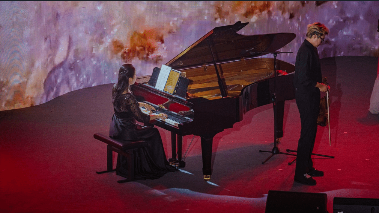 带着坚毅的眼神,踏着坚定的步伐,机械学院的师生们走上了舞台。“长城蜿蜒诉说着中华民族的坚韧不屈,泰山形状绵延着华夏人民的勇毅和果敢祖国……”,在钱院长和袁书记的朗诵中,完美体育·(中国)官方网站演唱的《祖国慈祥的母亲》正式开幕,指挥人轻轻抬起的手下,同学们激昂的声音从胸腔喷涌而出,钢琴与古筝的结合,展现学院兼容并包的品质。“听吧新征程号角吹响”爱国歌曲的奏响,诉说着一代人对祖国的衷情。在悠扬激荡的旋律声中,完美体育·(中国)官方网站的演出圆满落下帷幕。