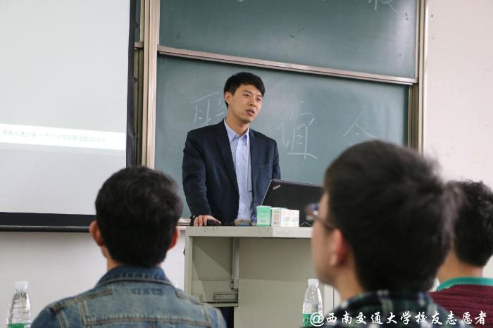3月28日下午3点,由西南交通大学校友者愿者协会举办的“迎校庆一汽-大众校友归校联谊”在x2333准时举行。高辉、李捷、张剑锋、于泰州、蒋耀、罗华等六位校友参加了这次活动,他们此行的主要目的是为即将踏入社会的大三研二学生提供就业参考和指引。李捷担任活动主持。