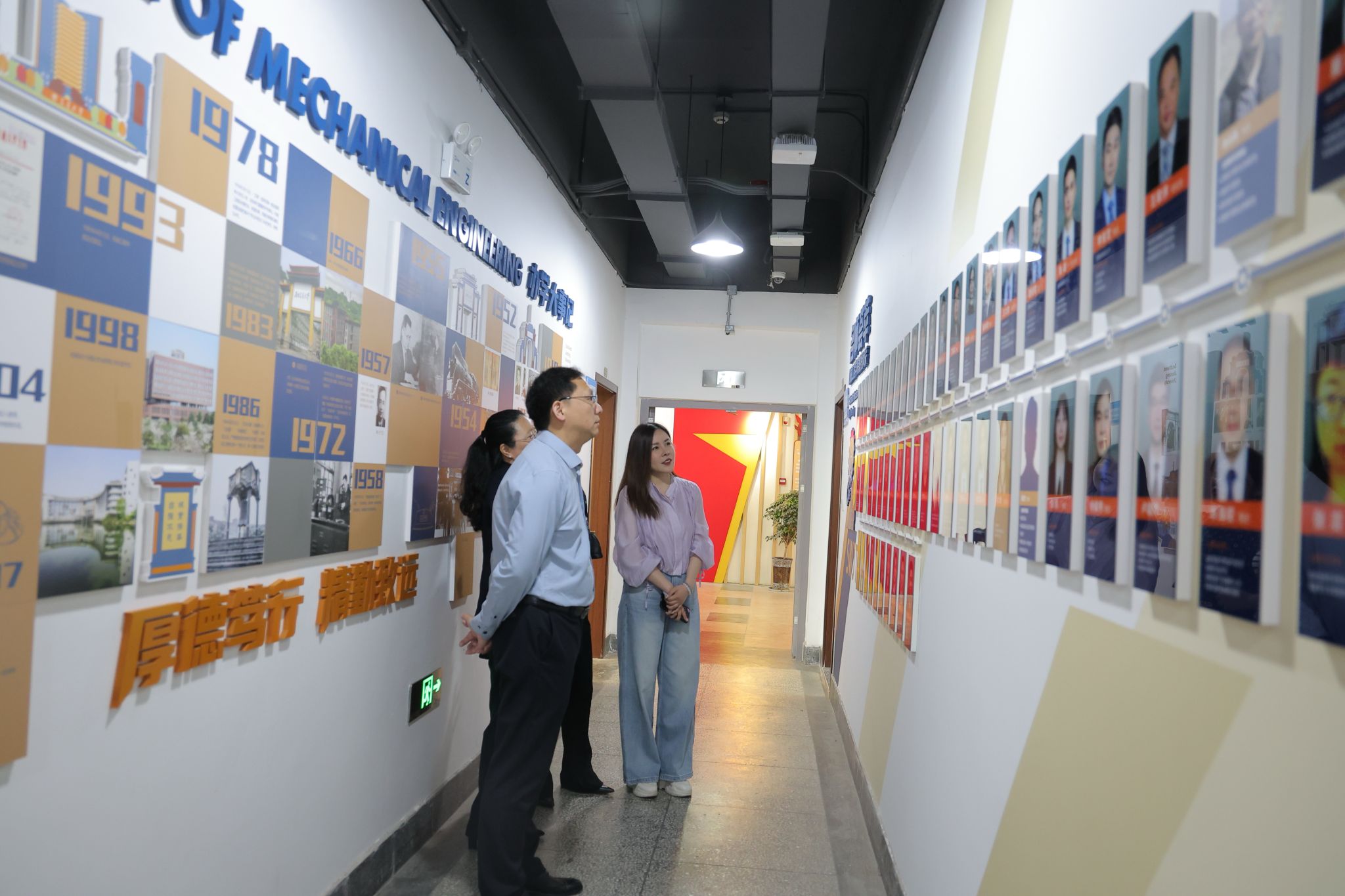 座谈会前,在沙晓雪的带领下,高学书、孙颖夫妇参观了九里校区机械馆的文化墙,重温了完美体育·(中国)官方网站的历史文化脉络,了解了学院近年来在科学研究、人才培养、学科专业建设、教学特色等方面的发展情况。