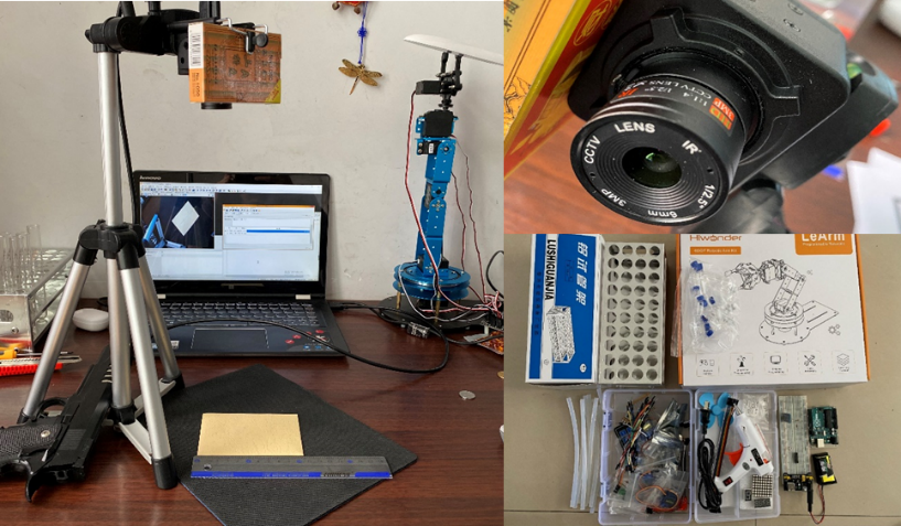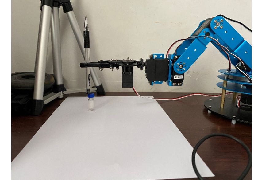 目前已经购进工业相机一台、6mm镜头一个、简易机械臂一台、单片机以相关配件、色谱进样瓶和注射器等,完成了简易机械臂的搭建以及视觉系统的搭建等等。