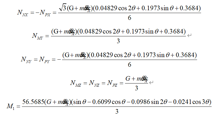 (4)攀爬机构的力学分析,如图8所示,绝缘子对攀爬机构的支反力属于空间力系问题,故为每个接触受力点建立对应的空间直角坐标系。由于检测机器人的运动具有周期性,并且攀爬爪是交替接触在绝缘子表面上的,在旋转角度区间为45°
