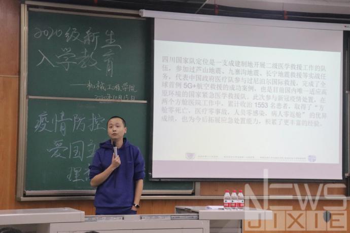 2020年10月13日19:30,完美体育·(中国)官方网站2020级新冠疫情防控及爱国主义教育、理想信念教育专题讲座在X4352举行。此次入学教育由成都市第三人民医院医生、援鄂医疗队队员秦立祥老师主持,历时一个半小时顺利结束。