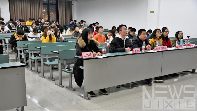 答辩选手们按顺序依次上台答辩,在四号选手答辩后,活动进入激动人心的有奖竞猜互动环节,参与回答均可在比赛结束后领取一份精美小礼品。有奖竞猜结束后,由吴凌宇、吕游两位同学带来一段精彩绝伦的相声表演——《托妻献子》,他们用才艺以另一种形式向我们展示诚信,并且带动全场气氛,为决赛增添了一分欢快。互动环节结束后,比赛继续进行,由五号到八号选手上台进行答辩。