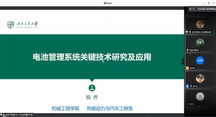 祝乔教授作为由外校到交大工作的青年优秀学者代表,分享了其到交大以来的职称成长和科研经历,汇报了其在新能源电池管理方面的科研的进展和思考。