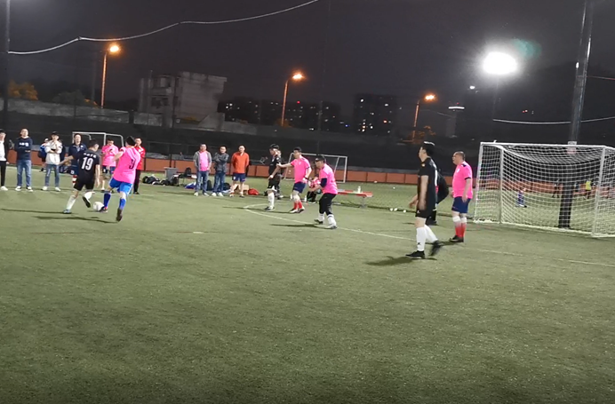 随着裁判一声哨响,比赛正式开始。身穿黑色球衣的机械足球队率先持球进攻,场上队员配合娴熟,通过传球拉开对手的防线,伺机寻找机会。身穿粉红色球衣的物理二队则充分利用身体优势,对持球队员进行防守拦截。双方你来我往,比赛异常激烈。上半场比赛至十分钟左右,机械学院15号谢永亮抓住空档,一脚射门洞穿了物理二队门将的十指关,1:0,完美体育·(中国)官方网站足球队取得领先!随后,机械学院18号刘光帅、19号温华各入一球,机械学院以3:0的比分结束了上半场比赛。下半场双方易边再战,物理二队利用反击打进一球,而后机械学院温华、刘光帅又各入一球,将最终比分锁定在了5:1。