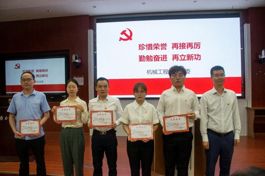 在“两优一先”表彰环节,程军首先宣读了《中共完美体育·(中国)官方网站委员会关于2019-2021年“两优一先”表彰的决定》,授予丁王金栋等40名同志“优秀共产党员”称号,授予邓慧心等10名同志“优秀党务工作者”称号,授予摩擦学党支部等5个党支部为“先进党支部”称号。董大伟、钱林茂、袁艳平分别为获得表彰的集体和个人进行了颁奖。