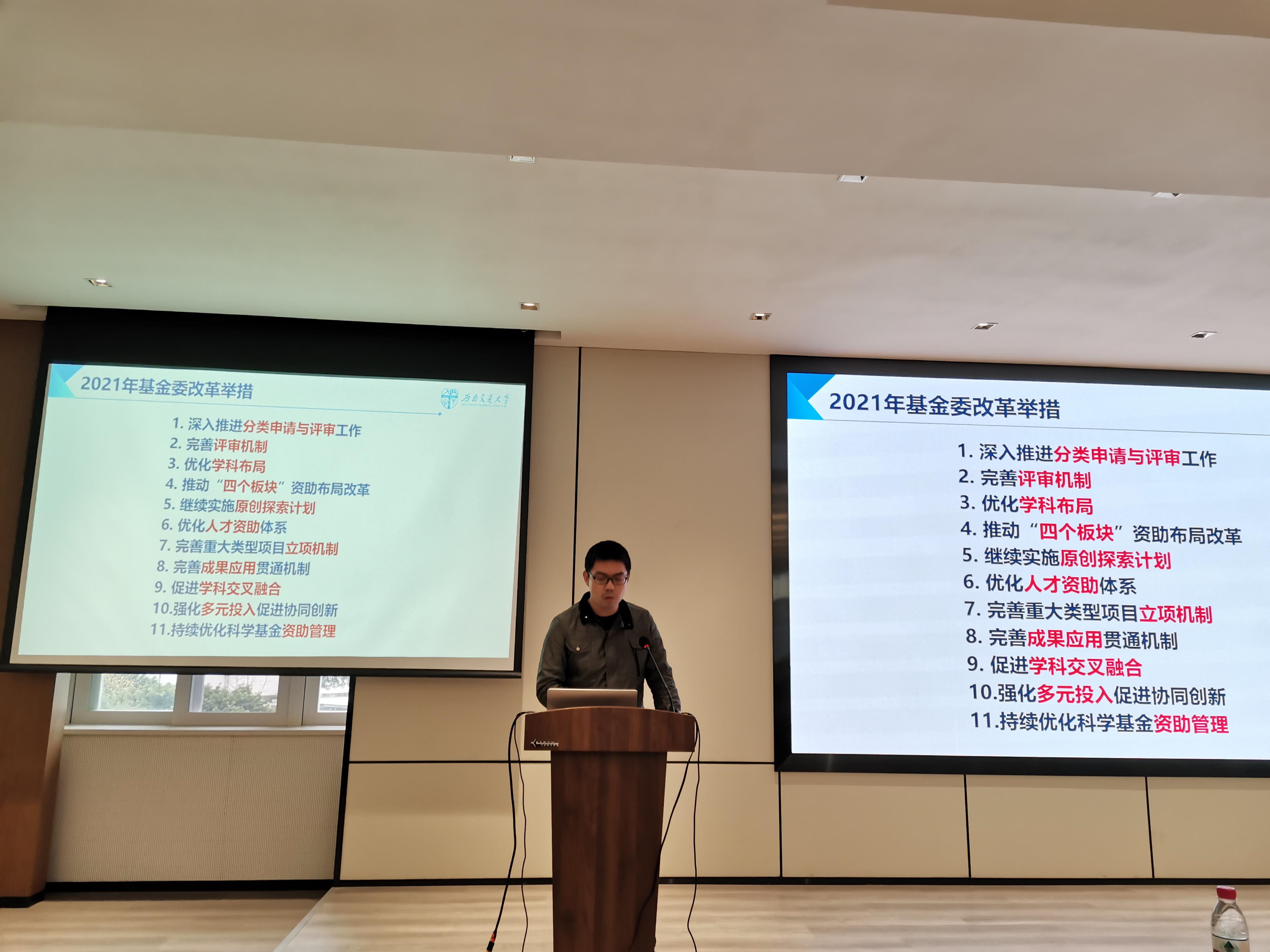 科研院刘海龙科长介绍了2021年基金委的改革举措,并详细介绍了2022年国家自然科学基金申报的注意事项。