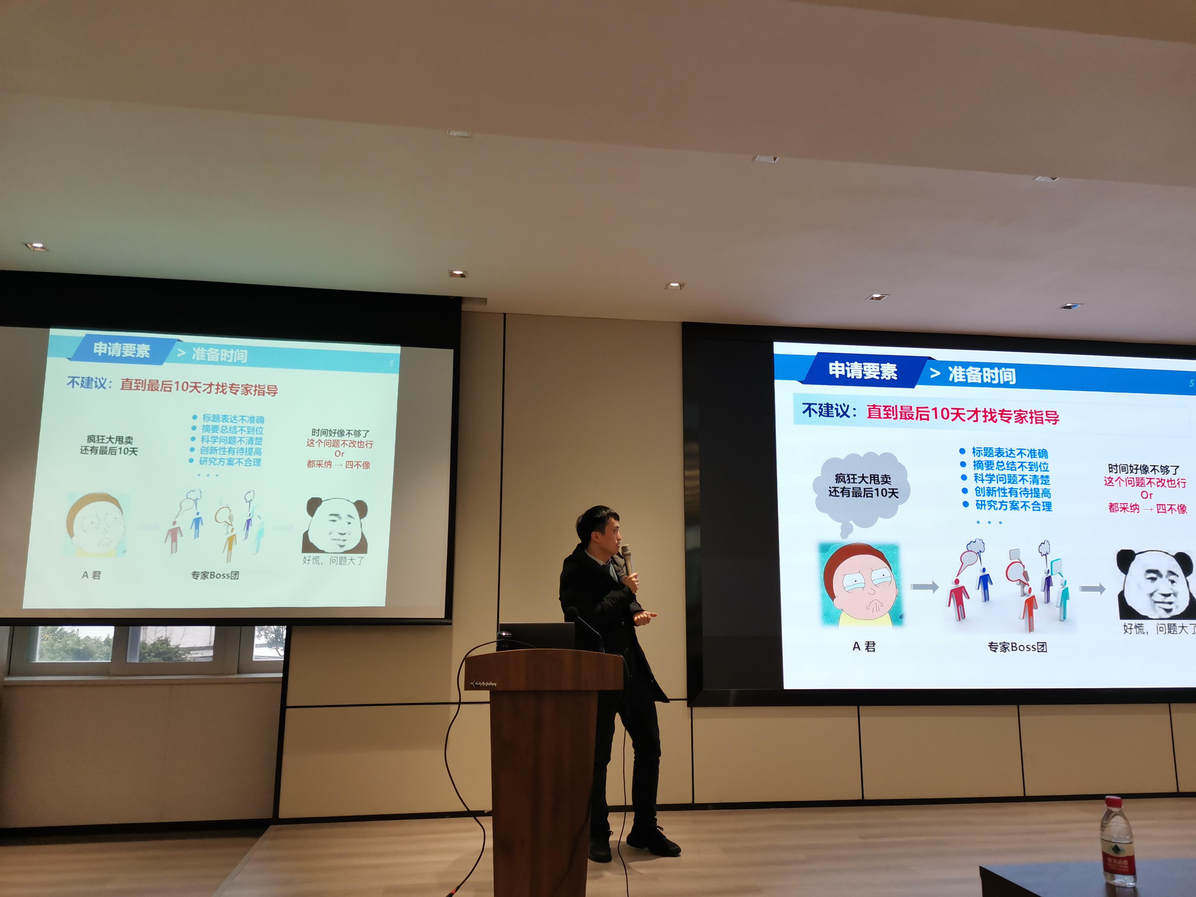 科研院马霖副院长总结了2021年学校自然基金申报的情况,强调了基金对于人才成长的重要性,详细介绍了学校在基金工作方面的一些政策,培育性项目,学术交流活动等,希望大家积极参与。