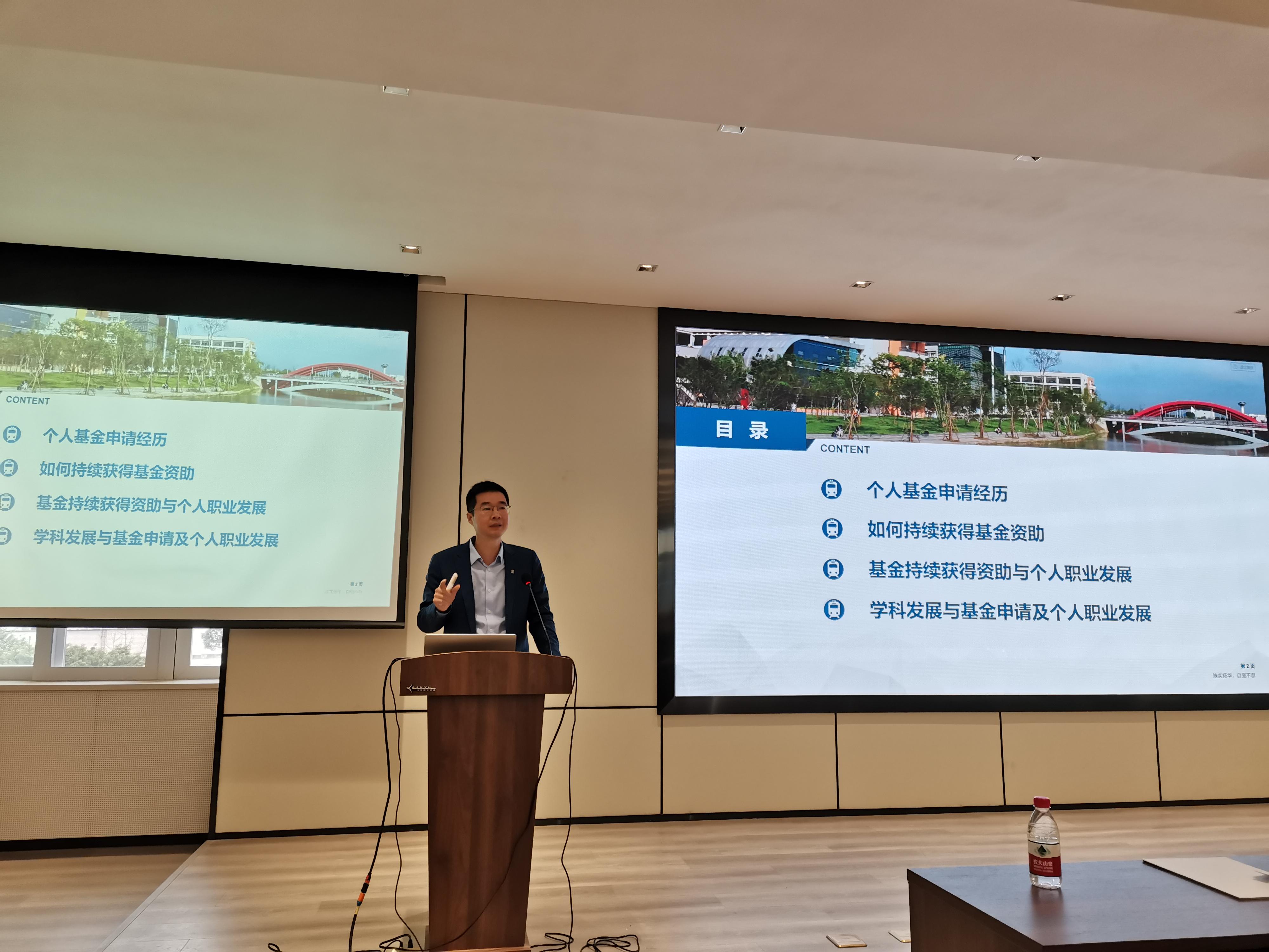 学院党委书记袁艳平教授结合个人申请自然基金的经历,从如何持续获得基金资助、基金持续获得资助与个人职业发展、学科发展与基金申请及个人职业发展等方面为大家作了详细的分享。