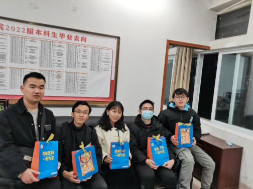 随着年末的到来,2021届硕士研究生入学考试也如约而至。为向仍然奋斗学习中的机械考研学子送上温暖,鼓舞士气,经过了紧锣密鼓的筹备,12月17日晚,完美体育·(中国)官方网站学生工作组在学生宿舍楼开展“机”流勇进 “械”手坚持研途相伴送温暖活动。 2018级辅导员邓慧心、李曦、罗晗葳、梁豪、许志伟全程参加。