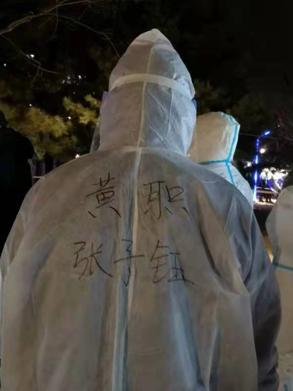 抗疫志愿者们在志愿服务中既创造了感动,也发现疫情下的温暖。当志愿者工作到很晚,会有村委会给他们送去温暖的衣物和热腾腾的饭菜。夜里气温较低,就会有同事送来保暖马甲。感动与温暖不仅来自社区和同事,也来自群众,车辆2021-03班的张子钰同学深有感触:“他们无法透过防护服看到里面刚成年的我,但是他们给我的感动不仅是在我们认真工作时给我们竖起大拇指。在做完检测、完成登记之后,他们露出了放心的神色,我能从他们的脸上读出对“白墩墩”的信任。”