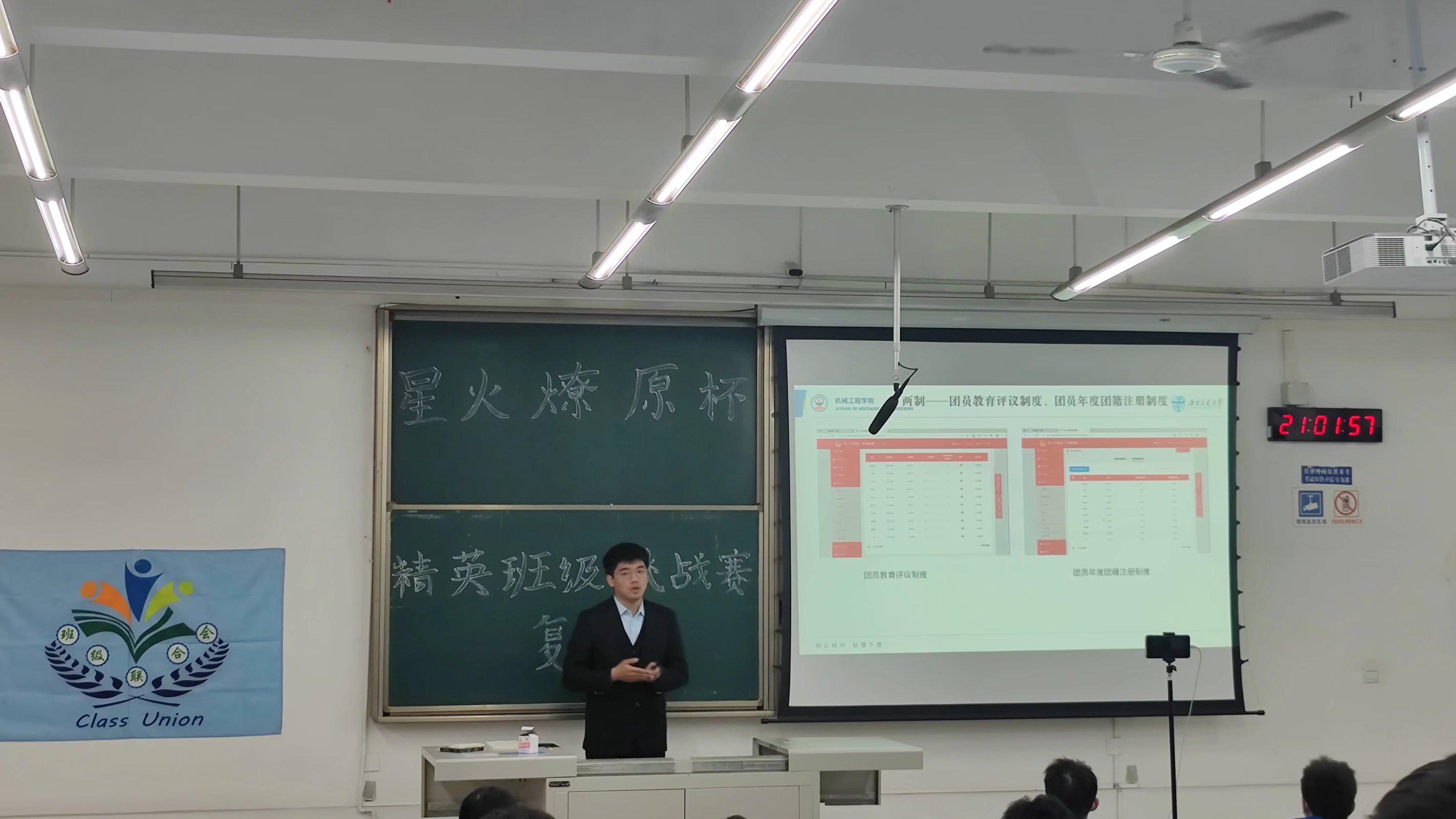 4月23日19点30分,第十三届“星火燎原杯”精英班级挑战赛复赛拉开帷幕。其中,XA组:测控2020-1班,2020-2班;车辆2020-3班,2021-4班,2021-6班;机械2020-5班,2020-7班,2020-7班,2021-茅班,2021-8班的比赛在X2217举行。XB组:交控2020-5班,2020-6班,2021-1班;机械2020-3班的比赛在X2216举行。参加本次活动的评委嘉宾有:西南交通大学班级联合会理事长周瑞泰,建筑学院会长宋佳凝,电气班联会长韩佳利、朱彤妍,交运班联会长王瑾润,机械班联会长王润生、张乐乐、应晨宇,以及机械新闻宣传中心主席朱炳旭。