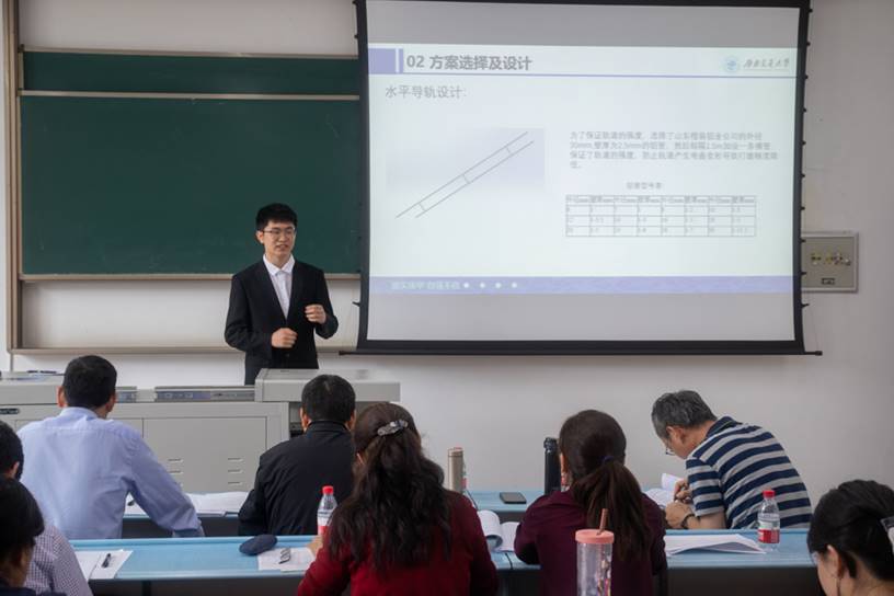 参与答辩的同学们通过讲解PPT的形式,从研究理由、研究目的、相关资料的查阅、作品设计过程和前景与展望五个方面,全方面地展示了自己的工作成果。在同学报告结束,评委老师们经过充分讨论后,对同学的报告内容,论文内容和实验内容等方面提问和指正,同时也对同学们的毕业设计成果表示了肯定。随后从论文格式、内容,实验设计等方面提出了自己中肯的建议和指导意见。而同学们在这一过程中,不卑不亢,逻辑缜密地回答老师们的问题,充分展示了机械学子们的优秀风采。