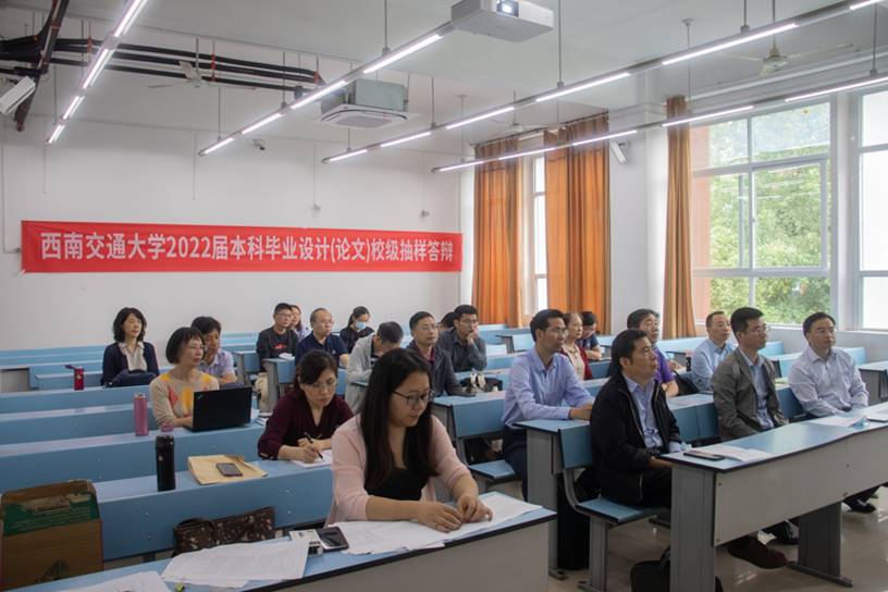 2022年5月26日上午8点30分 ,西南交通大学2022届本科生毕业设计(论文)完美体育·(中国)官方网站校抽样答辩在犀浦校区X2429、X2430举行。学院党委书记袁艳平、院长钱林茂亲临答辩现场指导本科生毕业设计(论文)校抽样答辩工作。