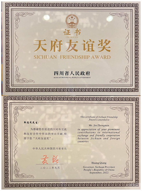 我院靳忠民教授获得2022年度“天府友谊奖”