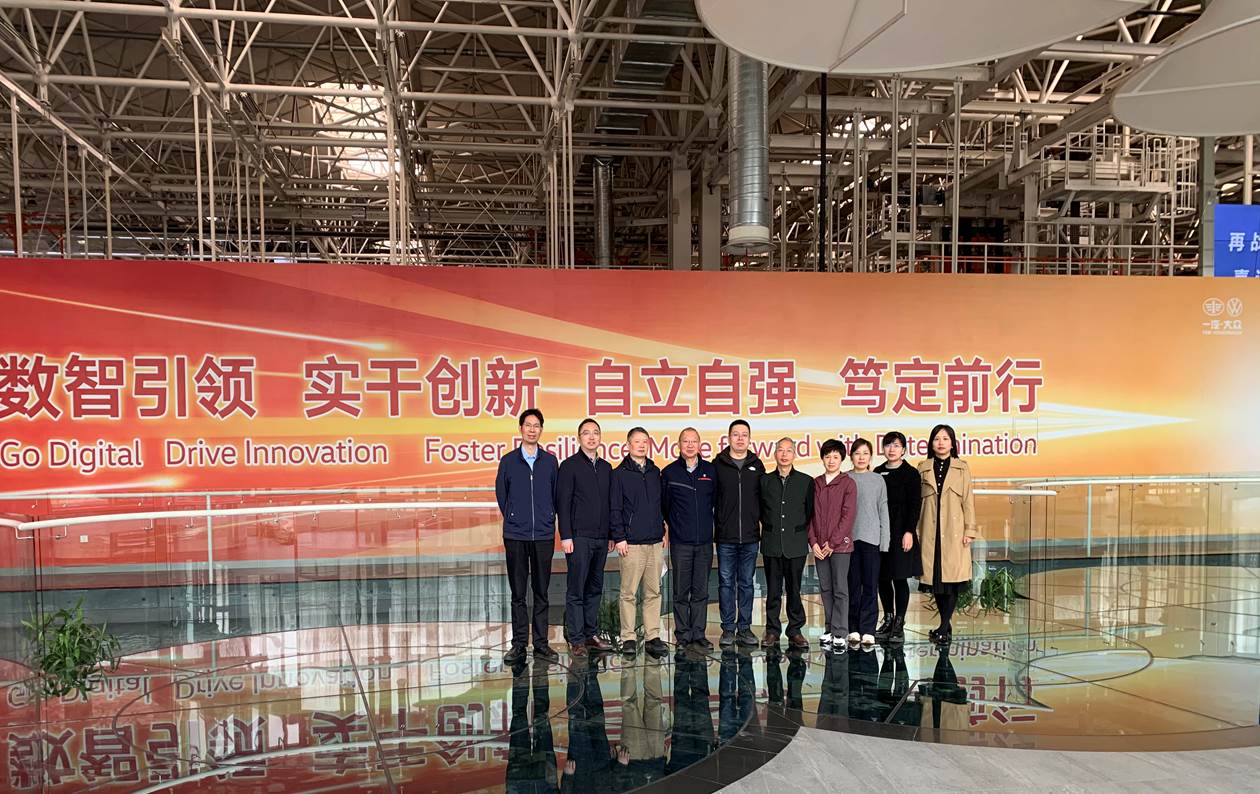 2023年4月10日上午,调研组走访了一汽大众有限公司(长春)。在2003级院友王井新的陪同下,调研组参观了一汽公司焊装车间及总装车间,看到了公司先进的制造工艺、精益求精的质保体系,更看到一汽-大众对品质的不懈追求。