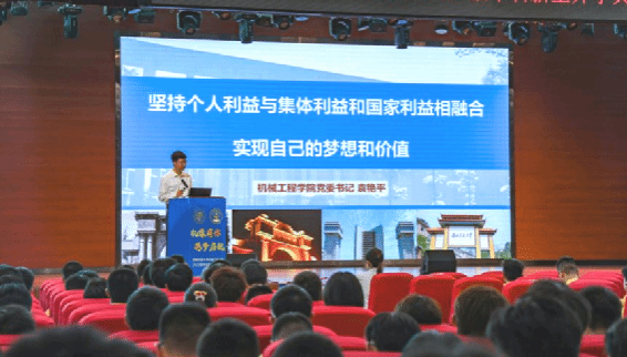 结合新生第一课,学院党委书记袁艳平深入新生年级,袁艳平书记以“坚持个人利益与集体利益和国家利益相结合,实现自己的梦想与价值”为题,教育引导广大学生牢记习近平总书记对青年学生的殷殷嘱托,为同学们带来了精彩的开学第一课。袁书记以陈能宽校友,沈志云校友,翟婉明教授,李晓玉学长等知名校友、著名教师和优秀学生为例,告诫同学们要将个人命运同国家命运、民族命运和时代命运相结合。袁书记提到,制造业是立国之本,机械强则国家强,每一位机械学子都应该认识到自己的责任与担当。最后,袁书记勉励所有新生认真学习,积极前进。