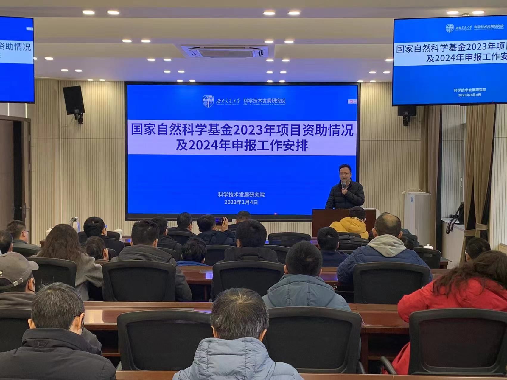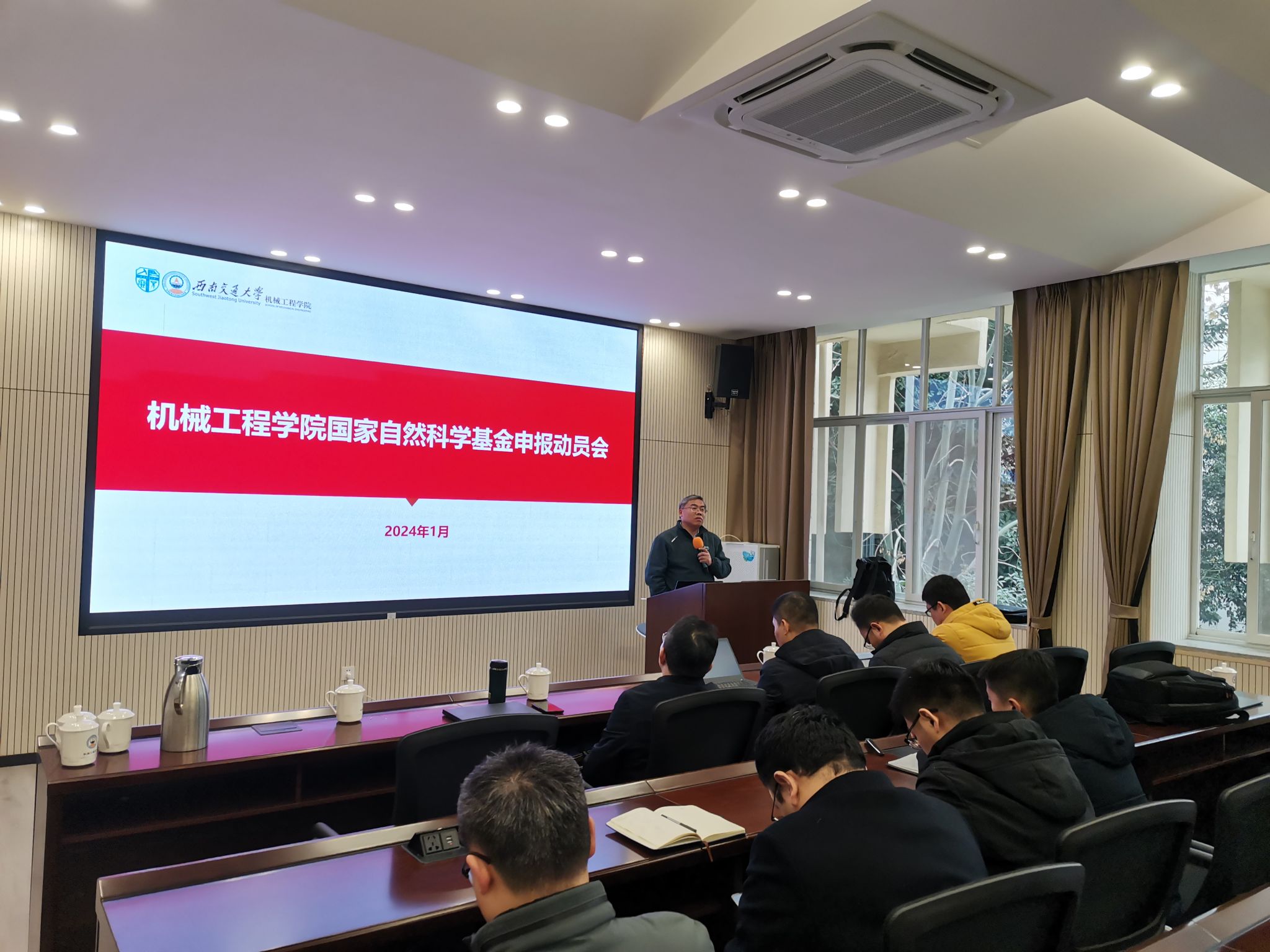 2024年1月4日,完美体育·(中国)官方网站在九里校区2223报告厅,召开了2024年度国家自然科学基金申报动员会。学院高度重视国家自然科学基金申报工作,特别邀请了特别邀请了科学技术发展研究院马霖副院长、基础研究科刘海龙科长,轨道交通运载系统全国重点实验室敬霖研究员,学院陈春俊教授为大家分享自然基金项目申报的经验,动员会由学院副院长丁国富教授主持。