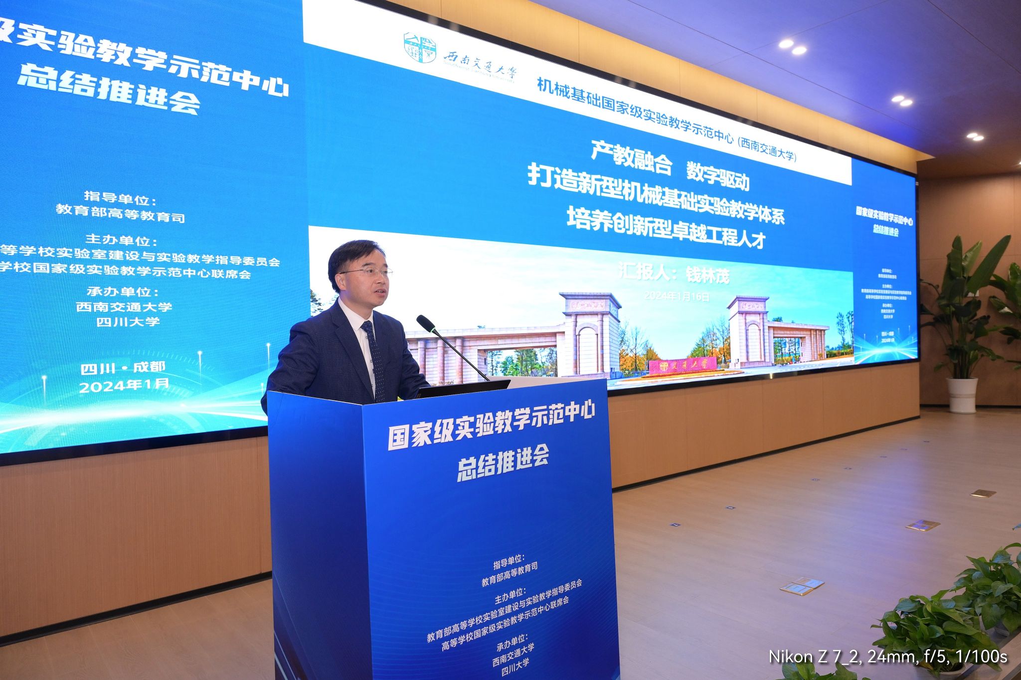 机械基础实验教学示范中心作为我校8个国家级实验教学示范中心中唯一的一个典型案例(四川省共有39个国家级实验教学示范中心,其中4个实验中心获评典型案例),由完美体育·(中国)官方网站院长钱林茂教授以题为“产教融合,数字驱动,打造新型机械基础实验教学体系,培养创新型卓越工程人才”的报告,向各位专家介绍了机械基础实验教学示范中心的建设和发展情况。