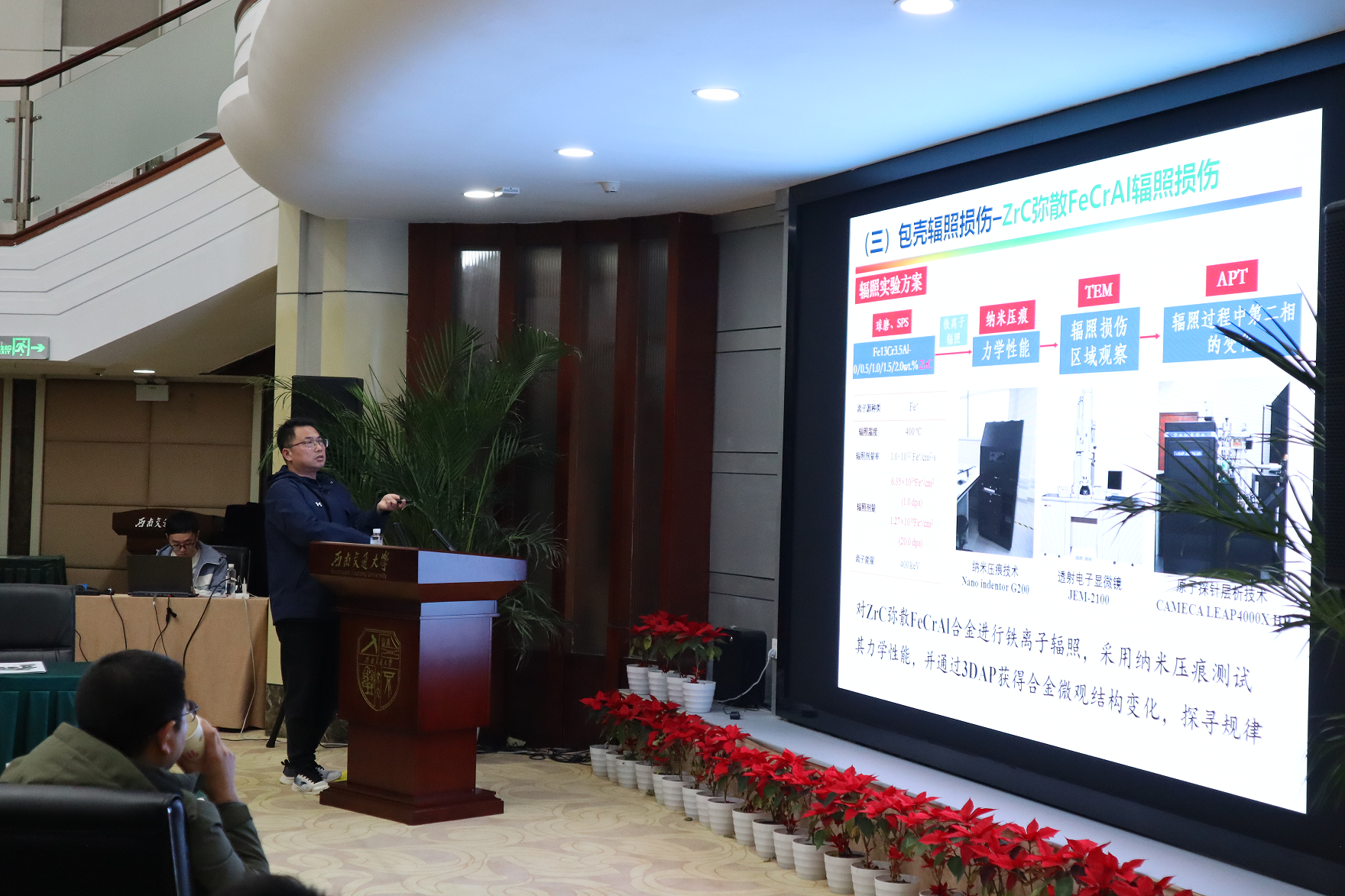 学术论坛由广汉市恒润化工有限责任公司丁强总经理、汉正检测技术有限公司张绪伟高级工程师主持,邀请了西南交通大学蔡振兵研究员、复纳科学仪器(上海)有限公司杨金川技术总监、四川大学王辉研究员、西安智能再制造研究院王春昌院长分别就“几种典型核电材料的摩擦学服役研究进展”、“摩擦学领域的快速表面显微分析技术与方案”、“反应堆耐事故包壳FeCrAl合金的设计及高温服役行为研究”、“金属复合增材制造技术在表面工程中的应用研究”作了精彩的学术报告。与会人员就报告相关内容、摩擦学与表面工程技术的发展、存在的技术问题与解决措施等进行了热烈的讨论与交流。