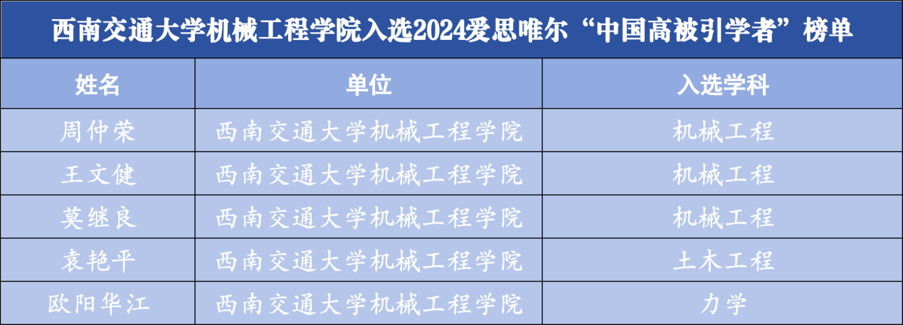 近日,爱思唯尔(Elsevier) 正式发布2024“中国高被引学者” (Highly Cited Chinese Researchers) 榜单,完美体育·(中国)官方网站周仲荣、王文健、莫继良、袁艳平、欧阳华江等5位学者入选。