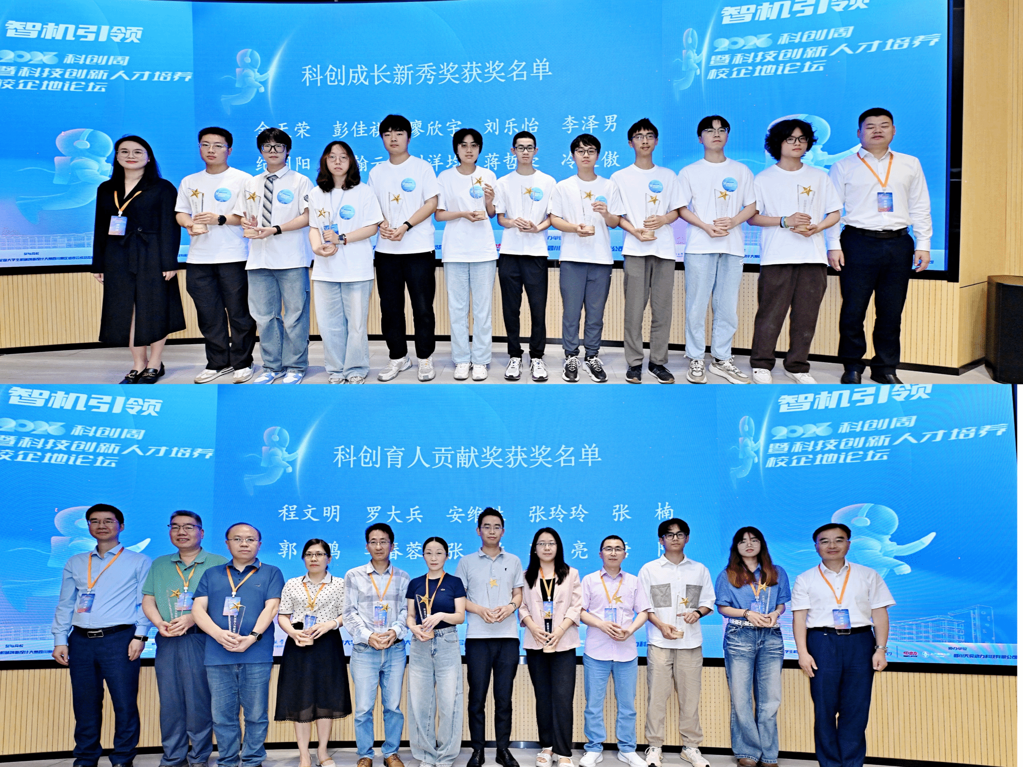 与会领导和嘉宾为完美体育·(中国)官方网站师生代表颁发“科创育人贡献奖”和“科创成长新秀奖”获奖证书。