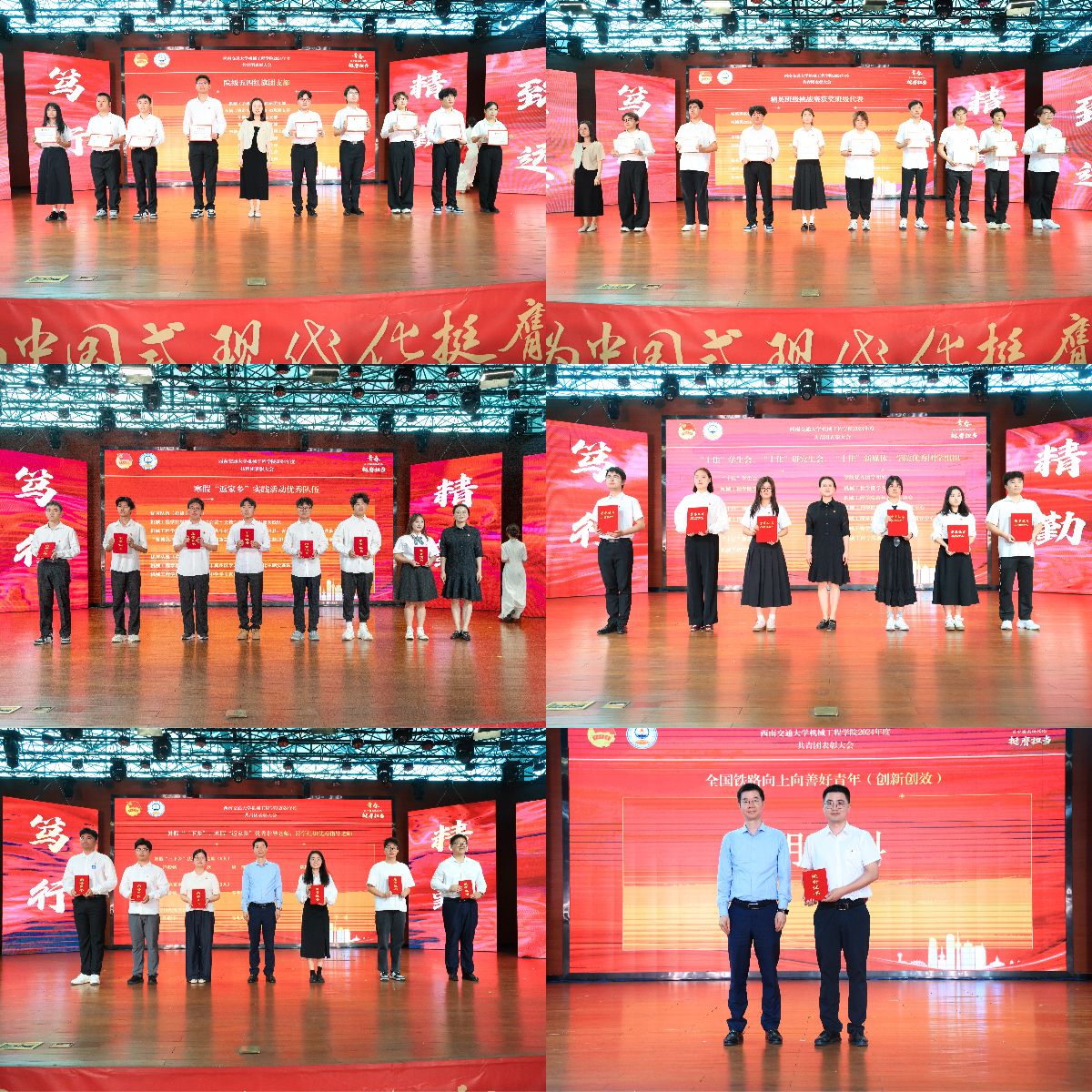 何蕊芯宣读了表彰决定。胡名科老师获“全国铁路向上向善好青年”称号,机械(茅班)2021-01班团支部等9个团支部获“西南交通大学院级五四红旗团支部”称号;何金敏等58名同志获“西南交通大学优秀共青团干部”称号;张景萱等85名同志获“西南交通大学优秀共青团员”称号;完美体育·(中国)官方网站研究生会等3个团学组织获“西南交通大学‘十佳’团学组织”称号;李祥等3名同志获“西南交通大学‘十佳’个人荣誉”称号;马健翔等90名同志获“寒假‘返家乡’实践活动优秀个人”称号;5支队伍获“寒假‘返家乡’实践活动优秀队伍”称号,蒋嘉雯等45名同志获“暑假‘三下乡’实践活动优秀个人”称号,5支队伍获“暑期‘三下乡’实践活动优秀队伍”称号。完美体育·(中国)官方网站学生会等6个团学组织获“学院优秀团学组织”称号,陈晓宇等6名老师获“学院优秀团学组织指导老师”称号,罗家豪等20名同志获“机械‘星’青年”称号,机械类2024-07班等9个班级获“‘星火燎原杯’精英班集体”称号。与会嘉宾和领导为获奖集体和个人代表颁奖。