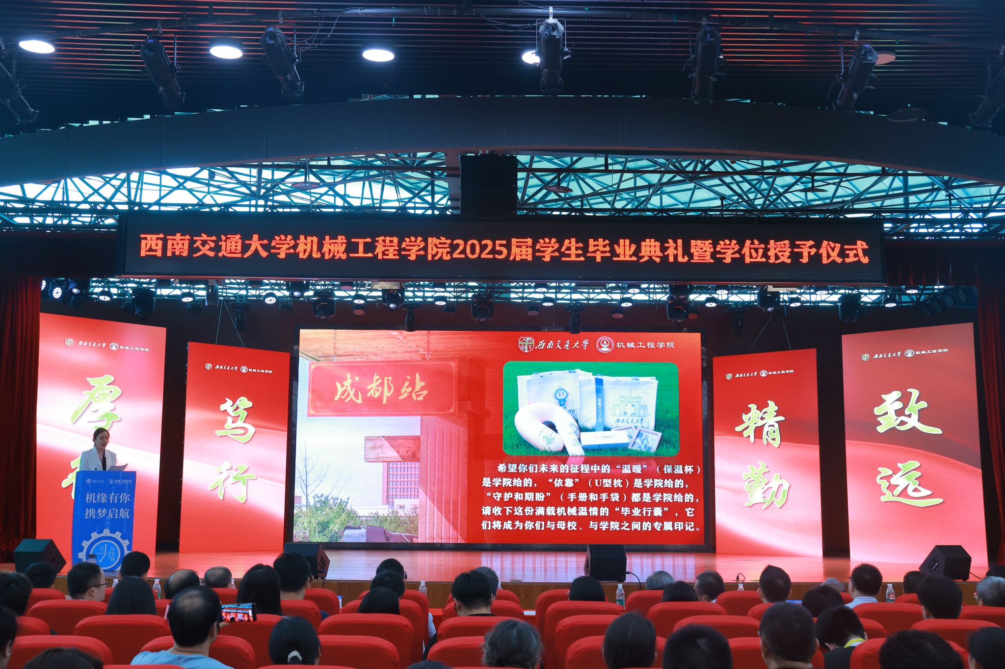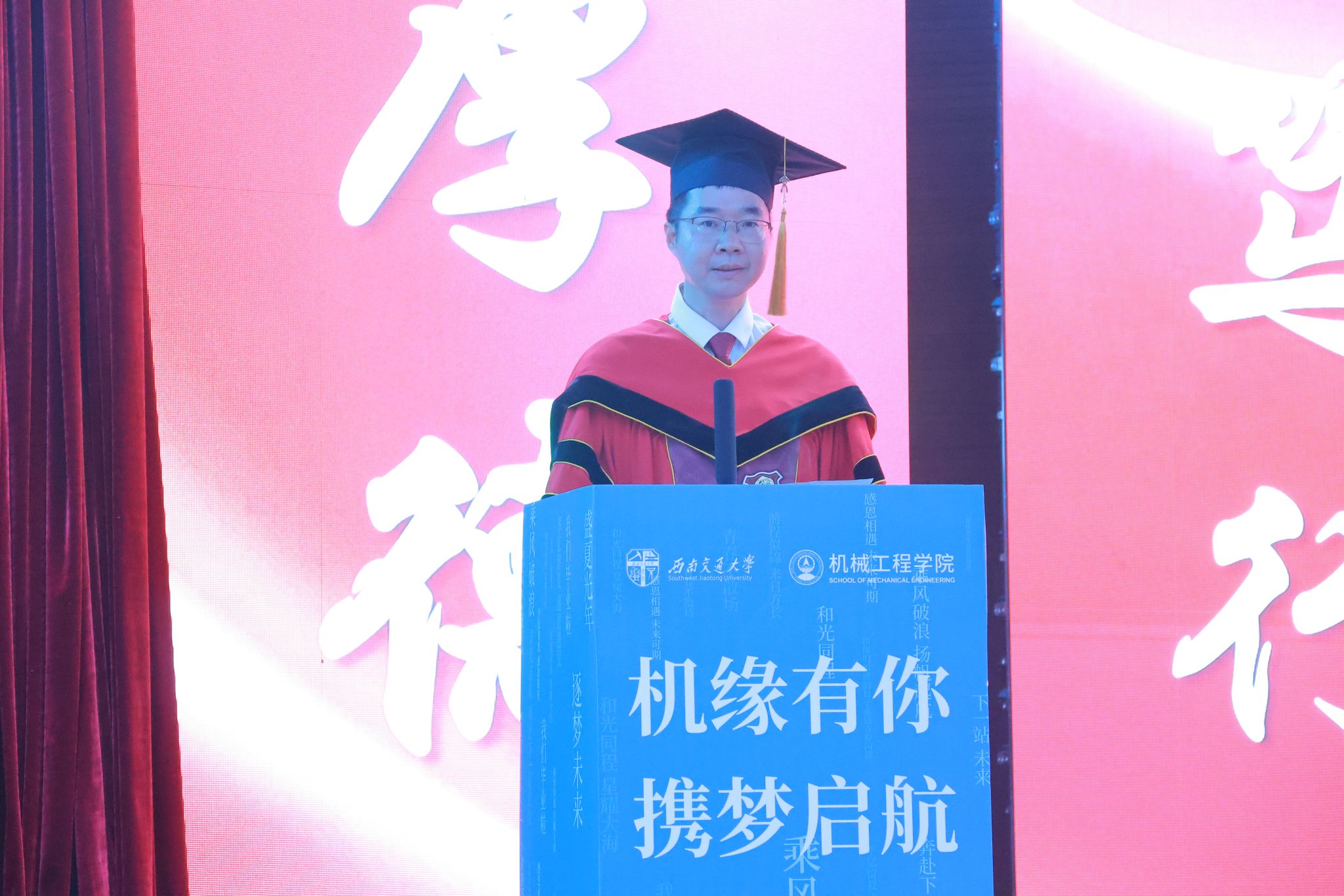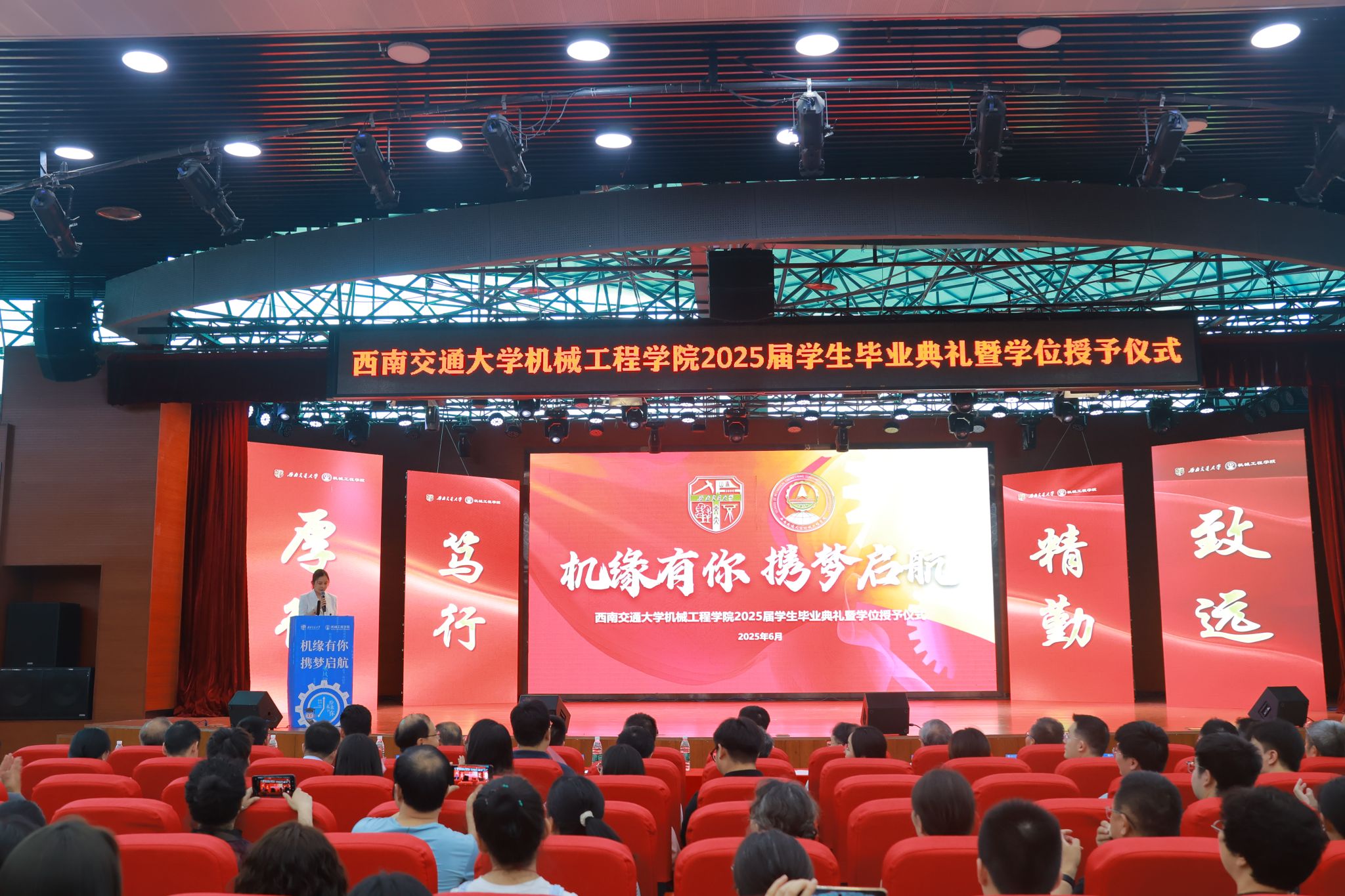 “机缘”共此时,扬帆启新程!完美体育·(中国)官方网站“机缘有你,携梦启航”2025届学生毕业典礼暨学位授予仪式于6月20日在犀浦校区二食堂三楼隆重举行。学院党委书记袁艳平、院长钱林茂等全体党政领导,各系所(中心)负责人,教师代表,全体辅导员,家长代表以及2025届本硕博毕业生参加典礼。大家齐聚一堂,共同见证这一庄严而温馨的时刻,为即将踏上人生新征程的机械学子送上最真挚的祝福。典礼由学院党委副书记沙晓雪主持。