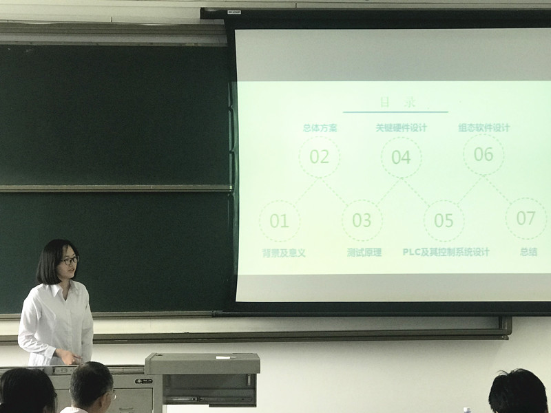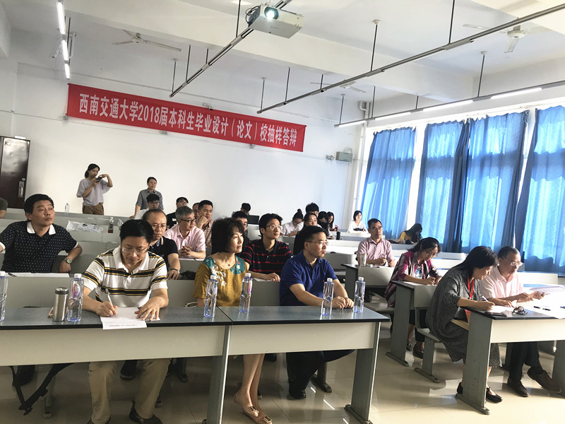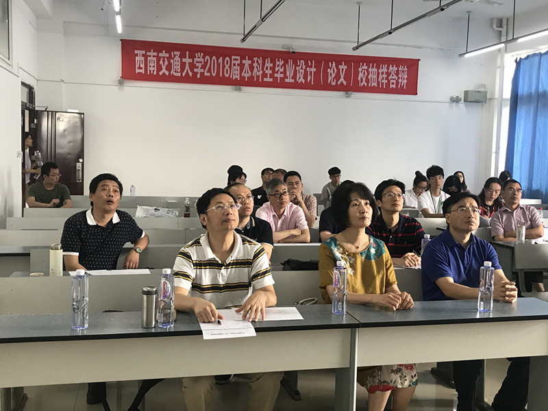 “你提出的测控系统能到达什么目标?”、“本文在控制设计方面参数的选择有什么依据?”、“你知道关键词应该怎么样写?”。这是校级抽样答辩中评委们提问的场景。2018年5月31日上午8点30分,西南交通大学2018届本科毕业设计(论文)校级抽样答辩在犀浦校区拉开帷幕。完美体育·(中国)官方网站在本次校级抽样答辩中作为第29、30组在X7302、X7309教室举行了答辩,答辩组副主任分别为田怀文教授和杨美传副教授,各系教研室主任、12名校级抽样答辩学生指导老师作为评委参与了答辩,部分学生旁听了答辩。