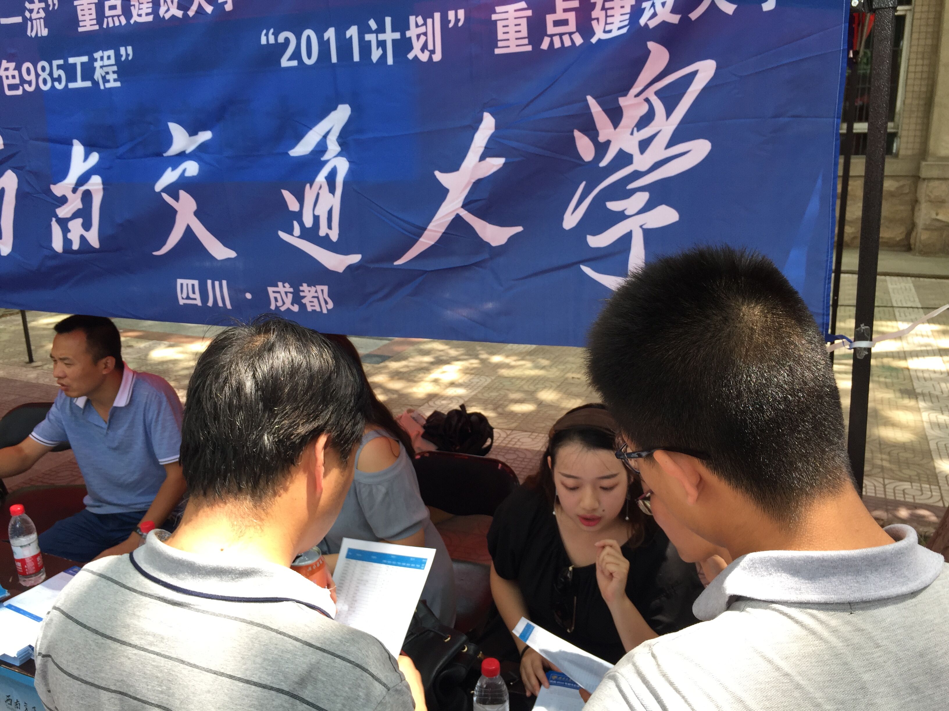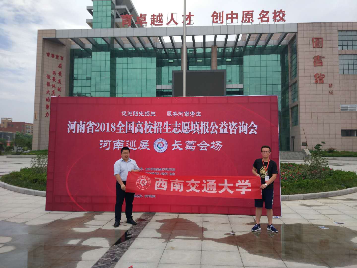 除此之外,学生工作组代表西南交通大学与四川大学联合在郑州举办招生宣讲会,实现了川内高校招生宣讲的互动。在洛阳就河南省定向招收轨道交通相关领域本科生工作于洛阳市轨道交通有限责任公司联合举行招生宣讲会,就定向招生政策为考生和家长进行说明,此项工作吸引了洛阳电视台、洛阳晚报等多家媒体关注。