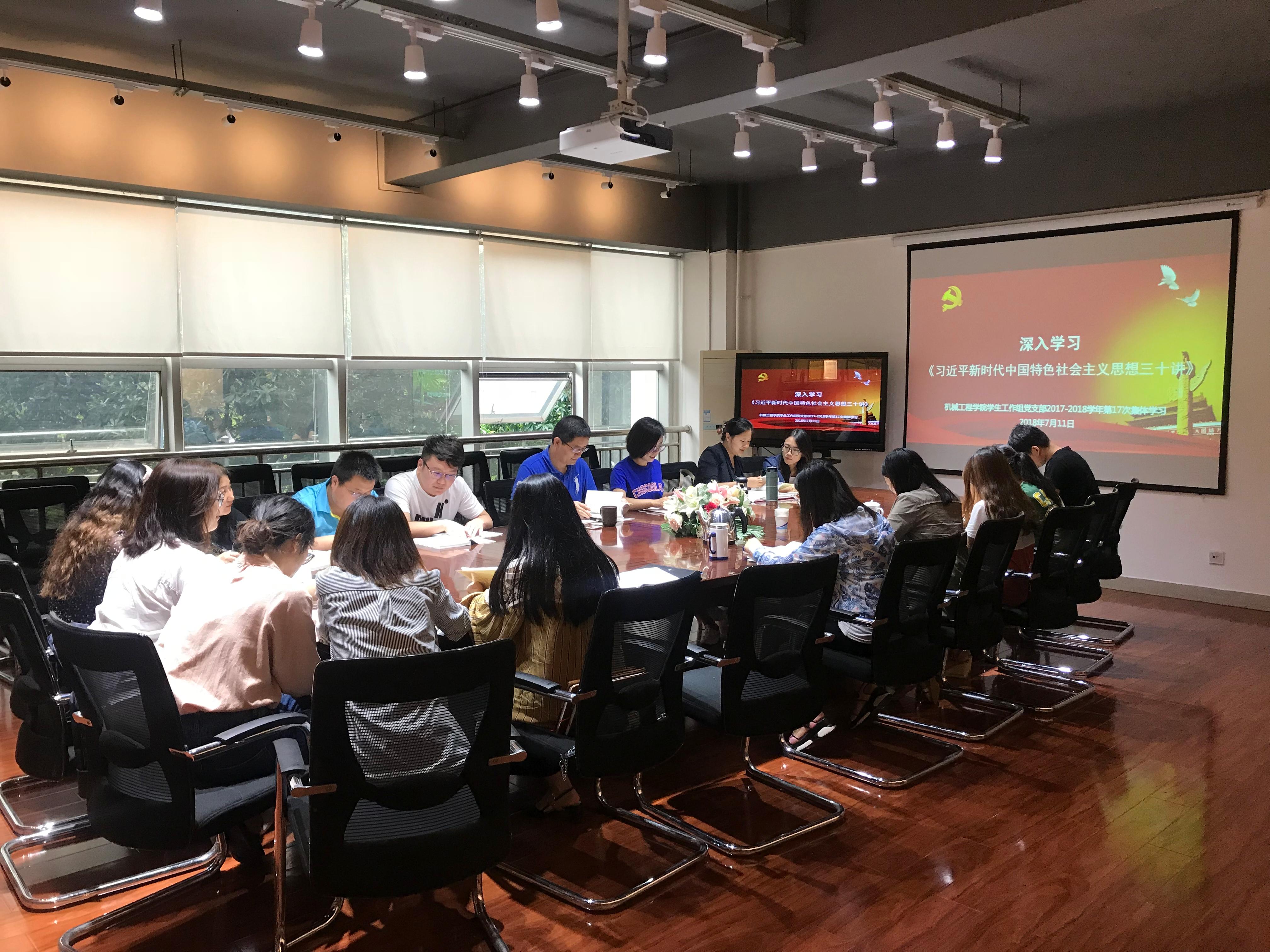 2018年7月11日下午14:30,完美体育·(中国)官方网站学生工作组党支部在犀浦校区X2201会议室开展了《习近平新时代中国特色社会主义思想三十讲》专题学习活动,暨完美体育·(中国)官方网站学生工作组党支部2017-2018学年第18次“二号楼下午茶”特色党支部活动。