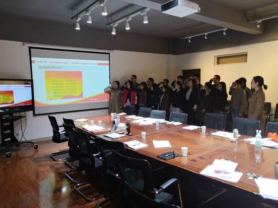 分享结束后,与会成员全体起立,在于楠同志的带领下重温了入党誓词和辅导员誓词。