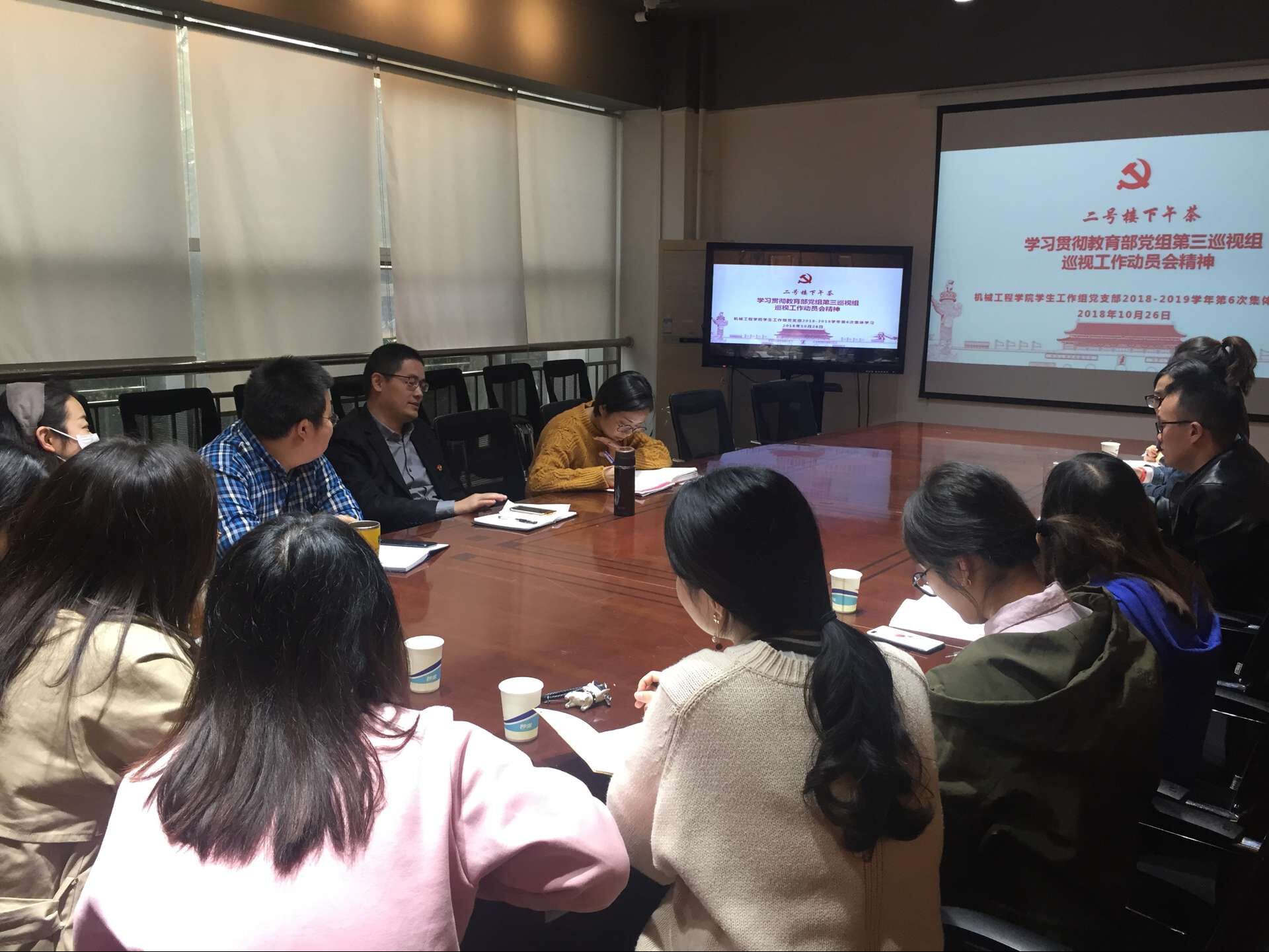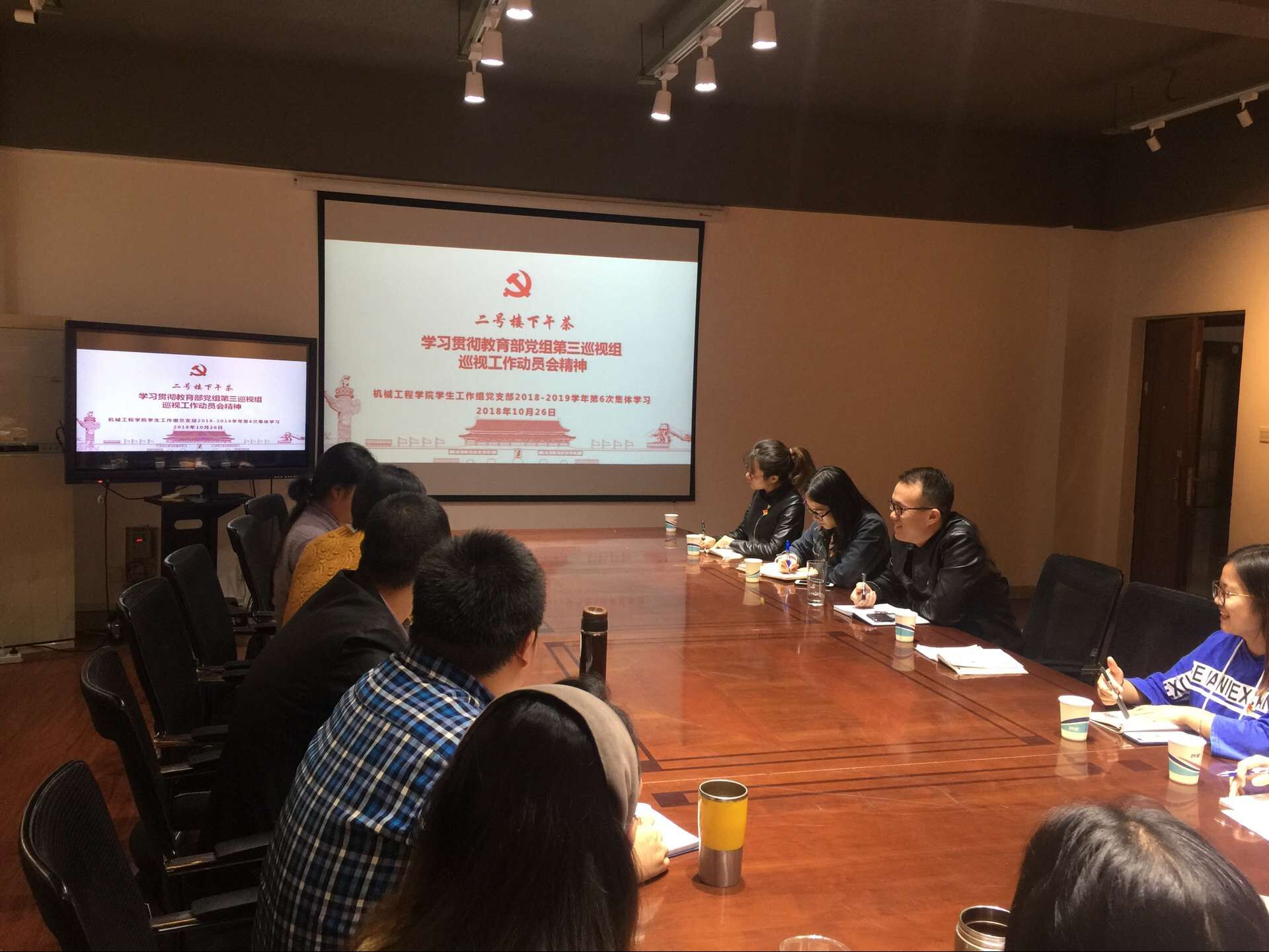 10月26日下午,学生工作组党支部全体党员齐聚X2201,深入学习了教育部党组第三巡视组巡视工作动员会精神和王顺洪书记所作表态发言的精神。