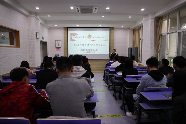 为了积极响应全国学联关于发起《自律公约》的倡议,及时规范学生干部的“官僚主义”行为,完美体育·(中国)官方网站于2018年10月11日下午,在九里校区2217会议室召开《学生干部自律公约》学习大会。会议由辅导员王连富老师主持,辅导员唐序老师、王媛老师、崔山佳老师、管奇卉老师以及机械研会学生干部、18级各班班长参加了本次会议。