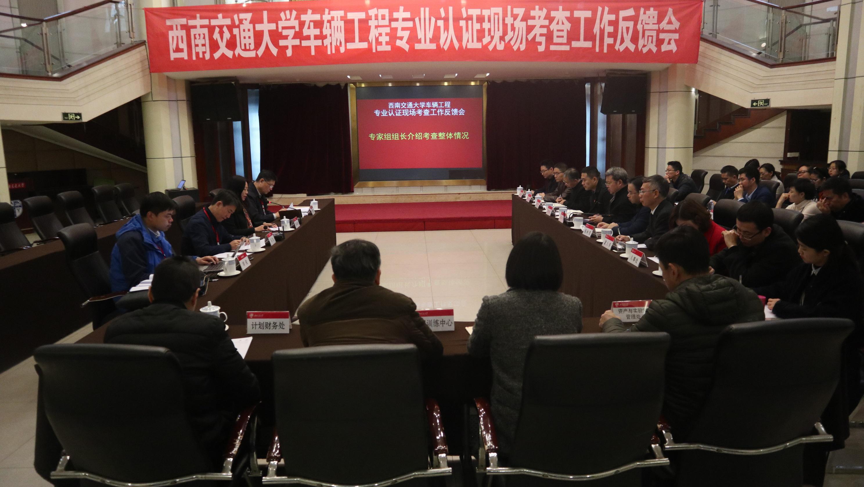 2018年11月21日上午10:30,西南交通大学车辆工程专业认证现场考查工作反馈会在九里校区镜湖宾馆多功能厅召开。