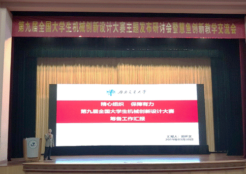 作为第九届全国大学生机械创新设计大赛承办高校,我院副院长田怀文教授代表学校做了大赛筹备工作情况汇报。首先,田教授介绍了学校、学院的悠久历史和发展状况,我校以轨道交通见长,建有轨道交通国家实验室(筹)和牵引动力国家重点实验室等一大批科技创新平台;学校教学遵循“严谨治学、严格要求”的“双严传统”,历来重视学生实践能力和创新精神的培养,形成了浓厚的创新创业氛围;学校引导和鼓励学生参加各类学科创新竞赛,也有承办和组织国家级、省级大赛的经验。