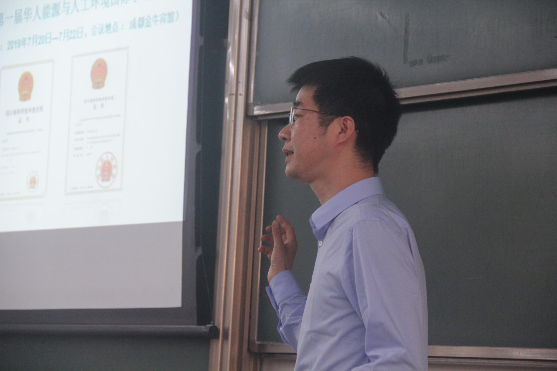 热能汽车系主任周斌老师对能源与动力工程专业进行介绍。以“人类不能没有机器,机器不能没有动力”扼要的突出该专业重要性,并强调其涉及所有能源动力方面,就业范围广的优势。