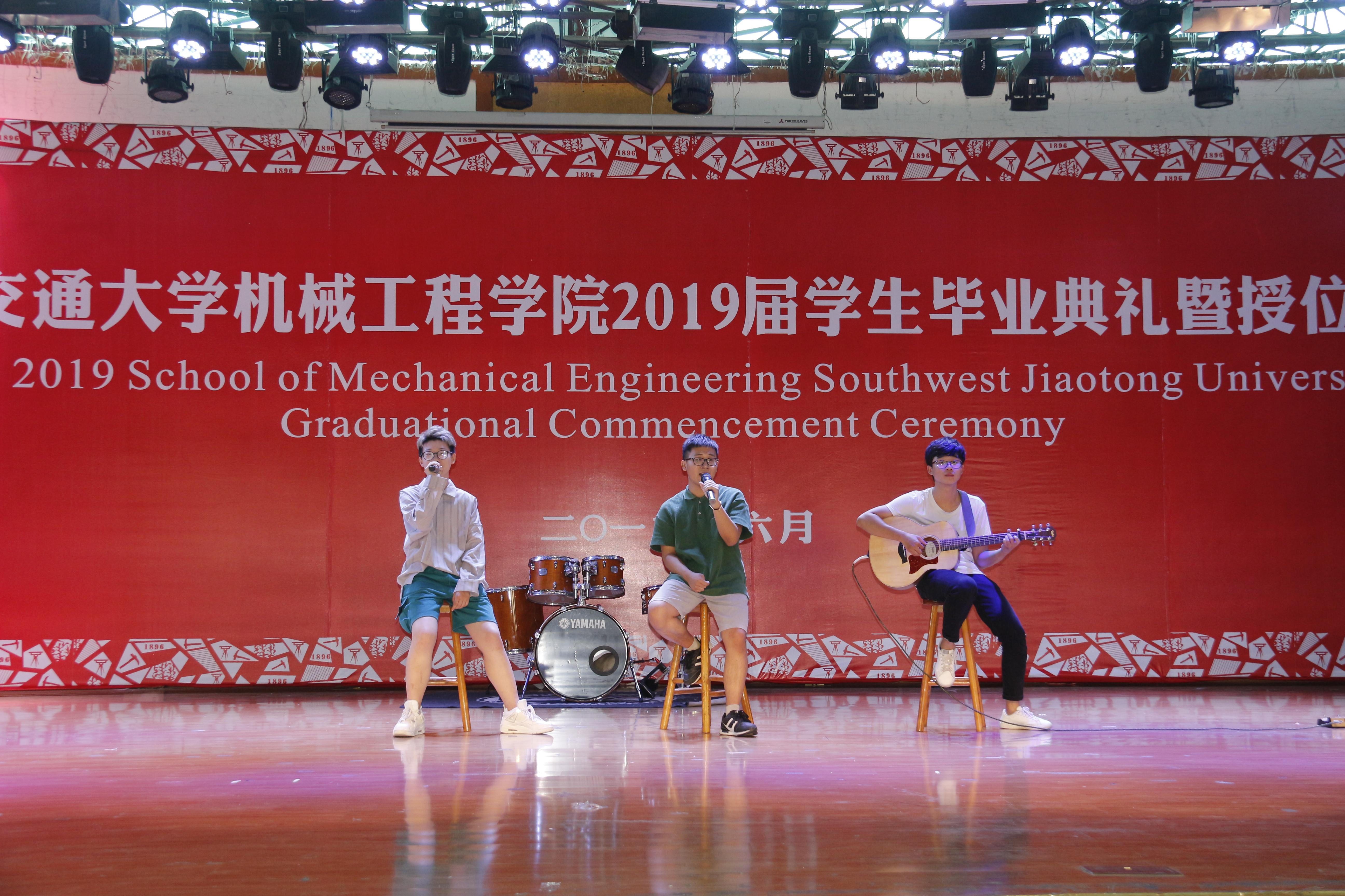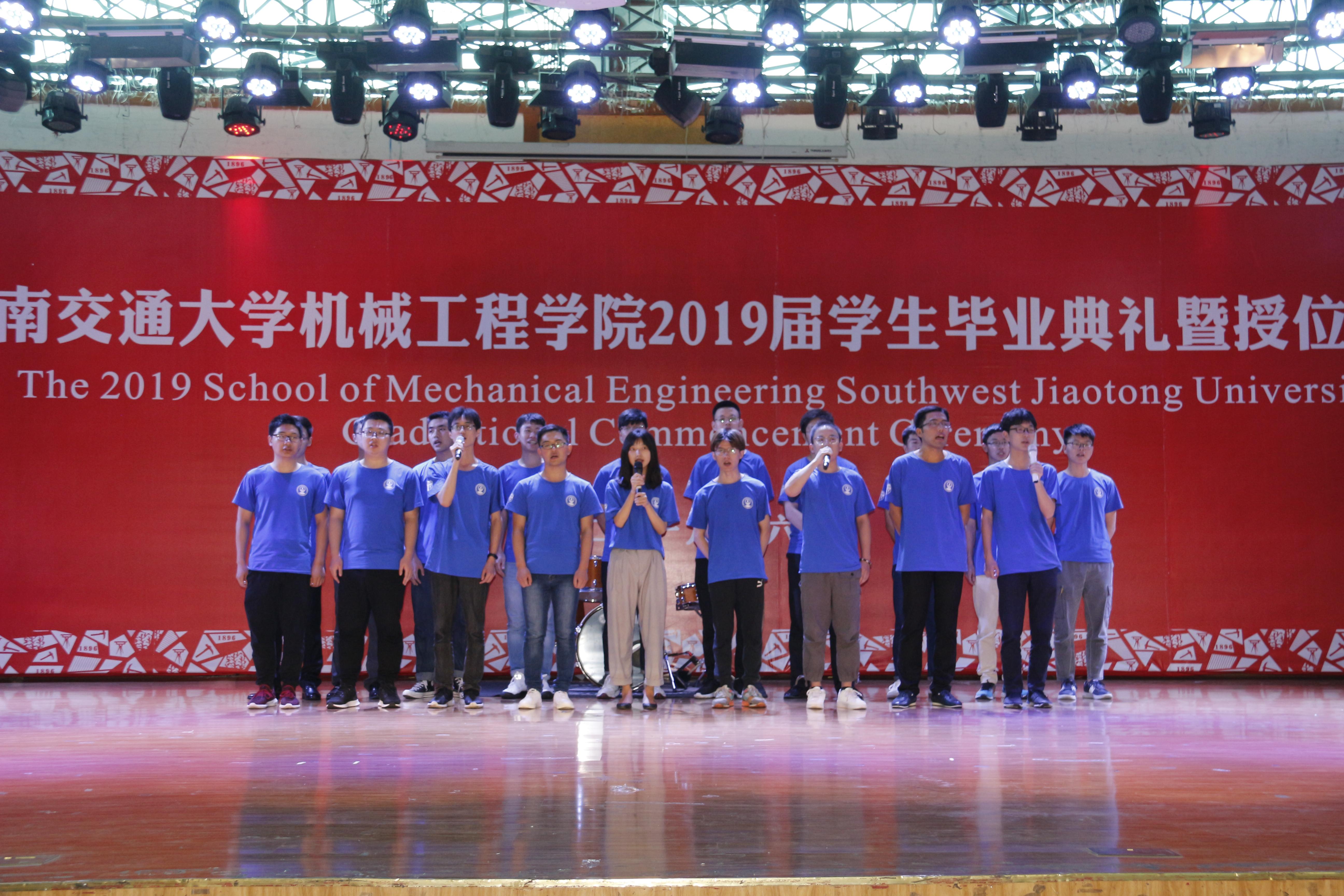 最后,全体起立,在雄壮的音乐声中,全体师生唱响了西南交通大学校歌。在这充满感动、喜悦与希冀的氛围中,完美体育·(中国)官方网站2019届毕业生学位授予仪式圆满结束。