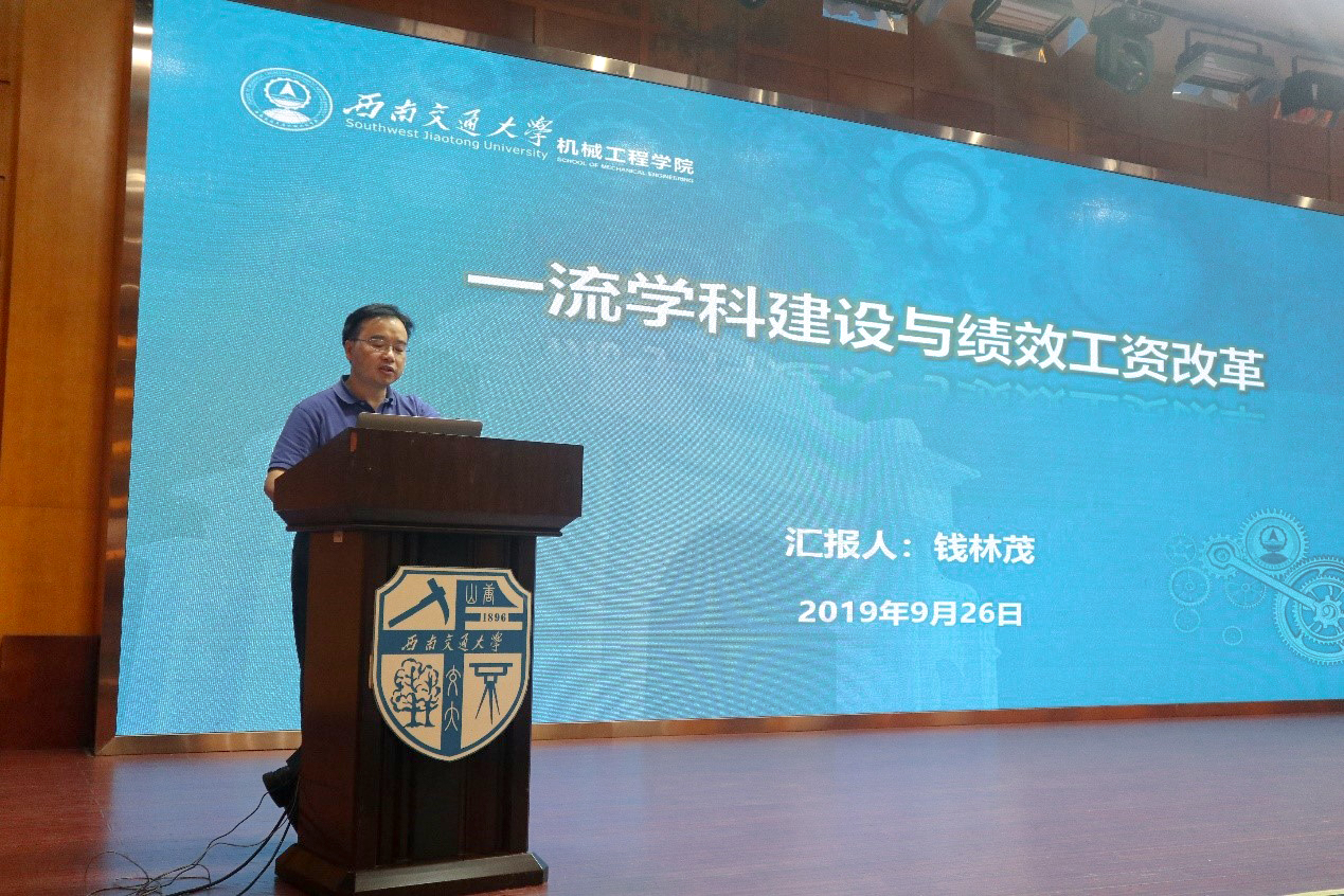 9月26日下午2时,机械工程学院在九里校区国际会议中心召开了全员教职工大会。本次大会由钱林茂院长对一流学科建设与绩效工资改革进行了工作汇报,田怀文副院长对完美体育·(中国)官方网站绩效工资分配方案进行了讲解。机械工程学院领导成员及全体教职工参加了这次会议。